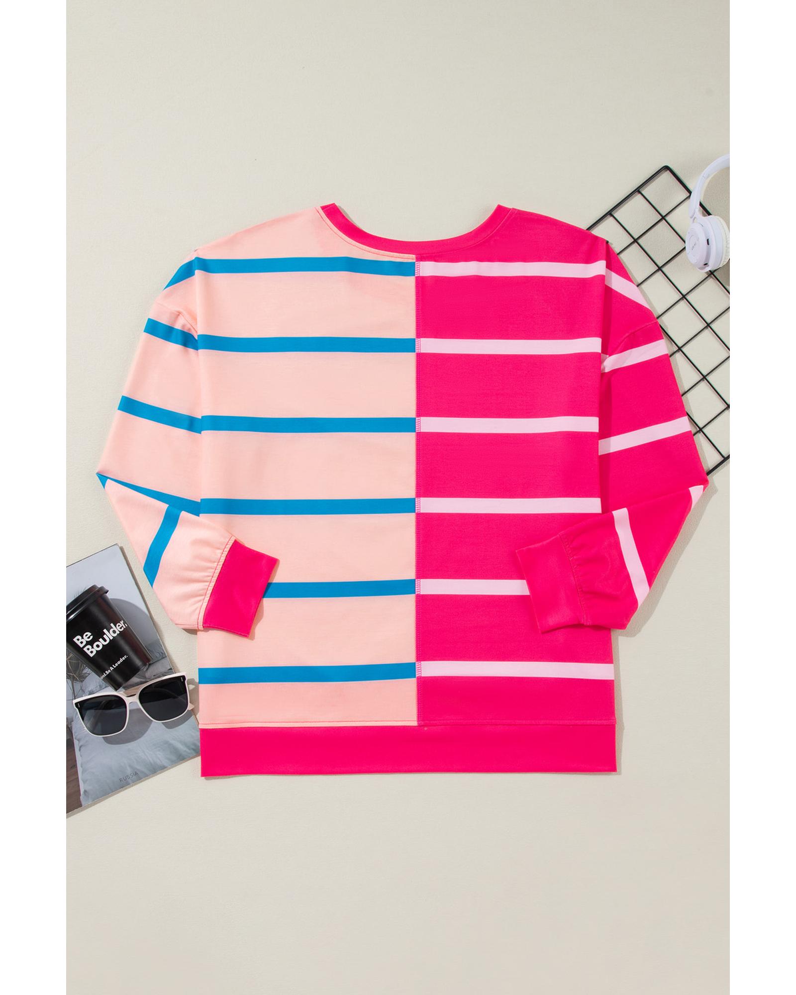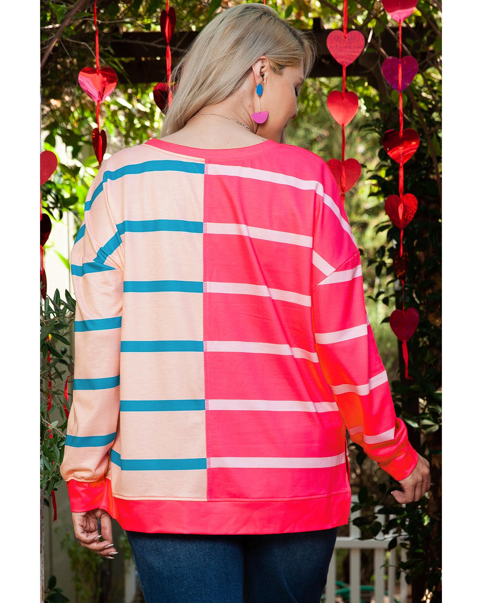 Rose Stripe Color Block Crewneck Long Sleeve Plus Size T Shirt – 2X