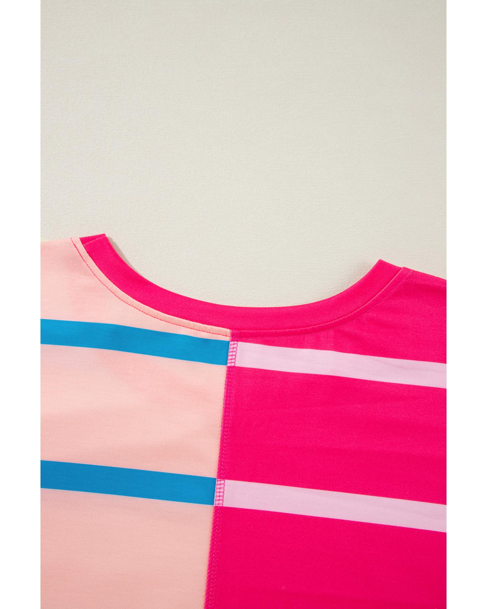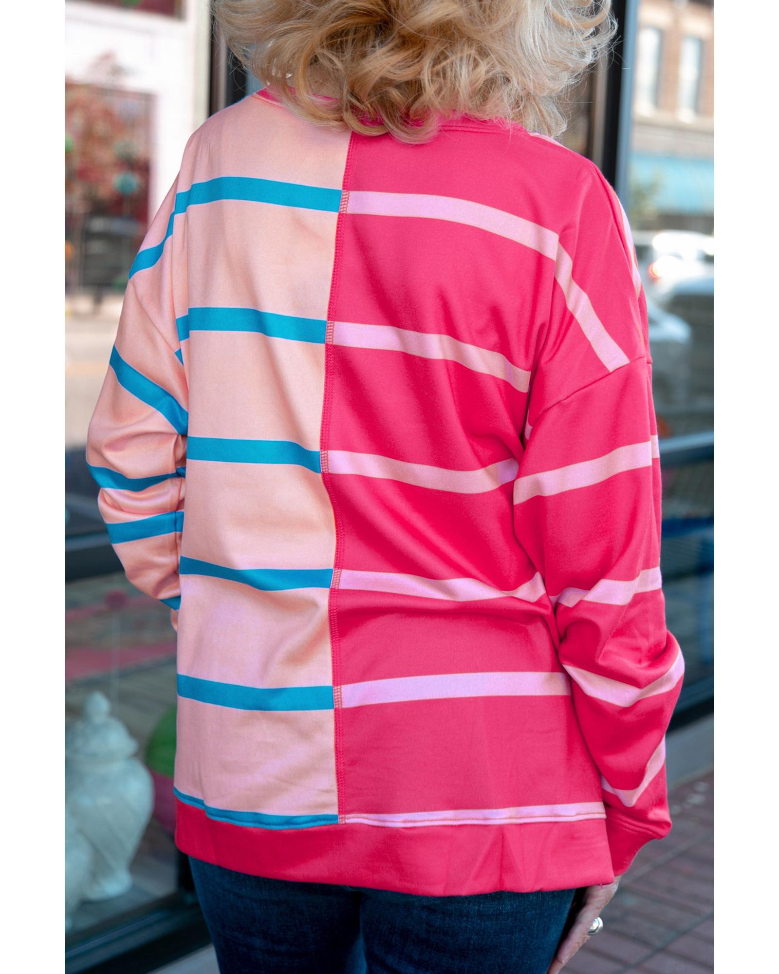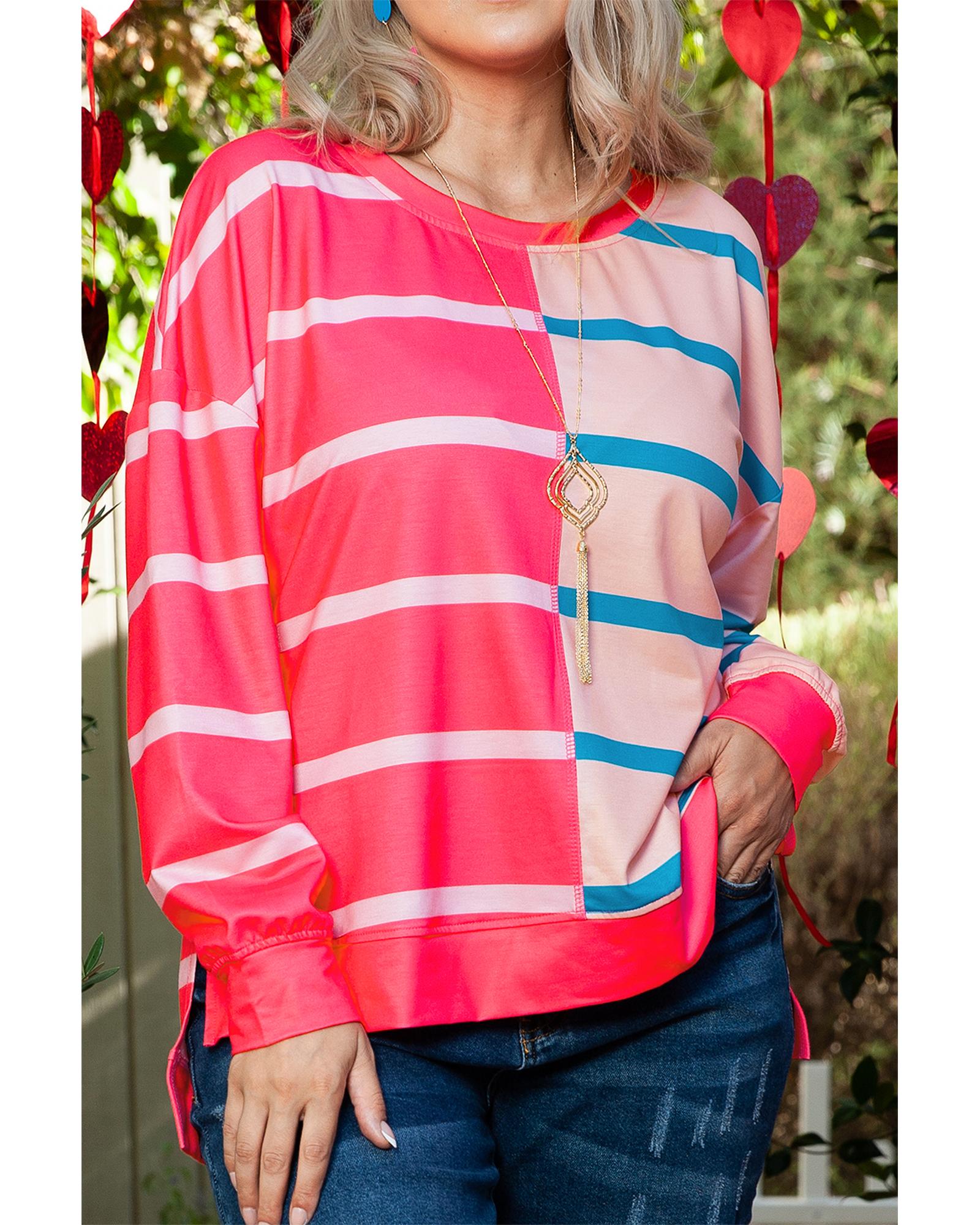 Rose Stripe Color Block Crewneck Long Sleeve Plus Size T Shirt – 3X