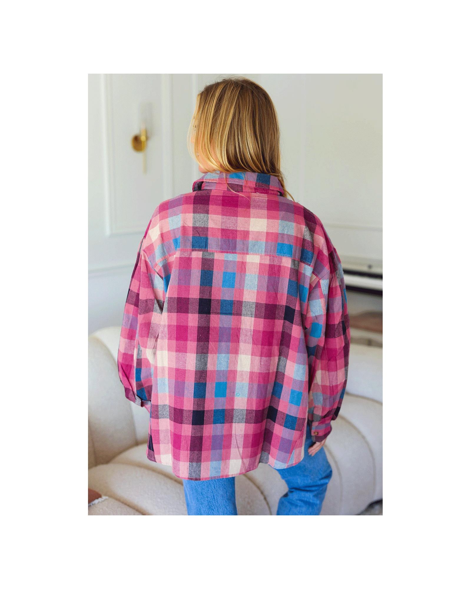Rose Stripe Plus Size Checkered Print Button up Shirt – 2X