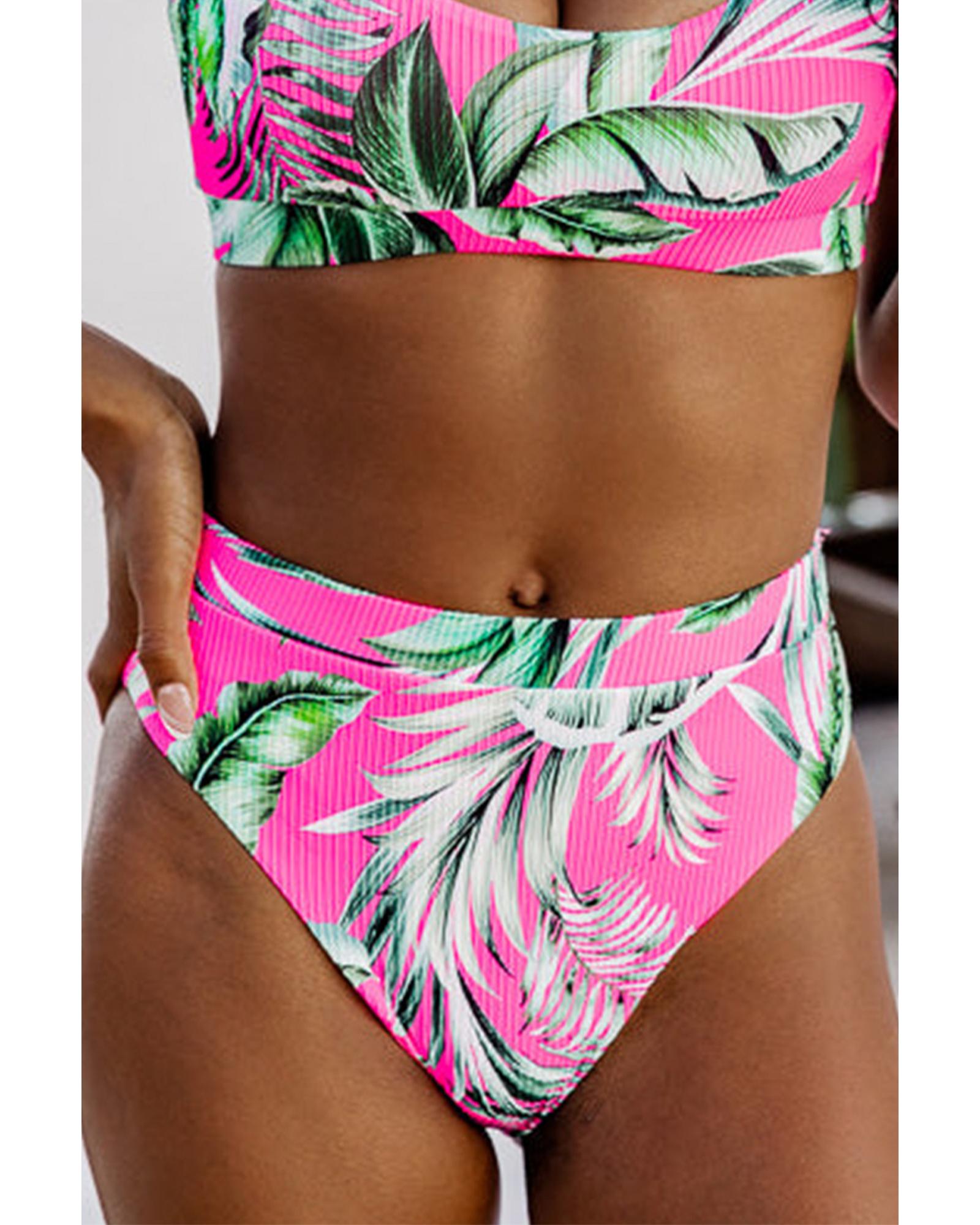 Rose Tropical Print Textured Bikini Bottoms – M