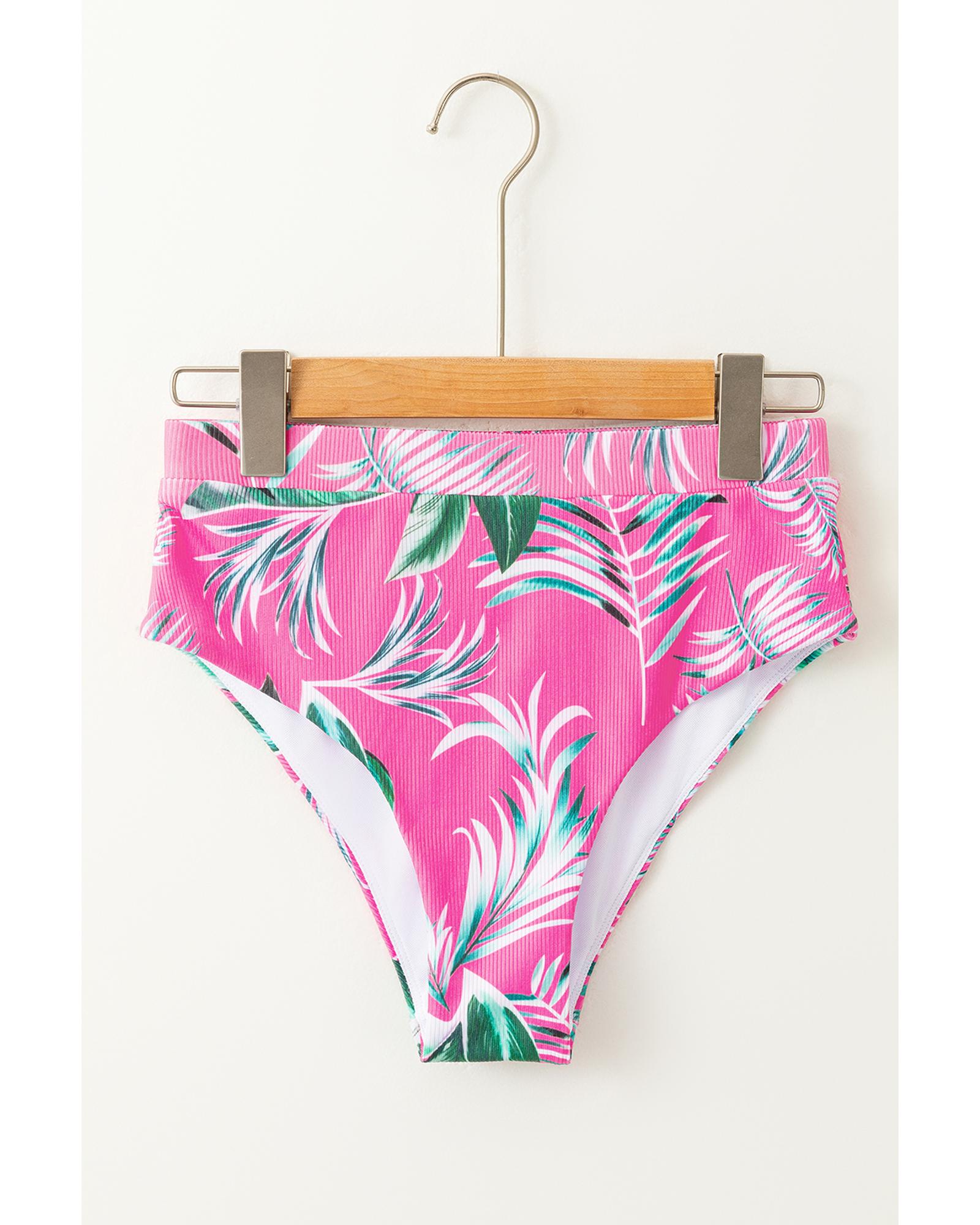 Rose Tropical Print Textured Bikini Bottoms – XL