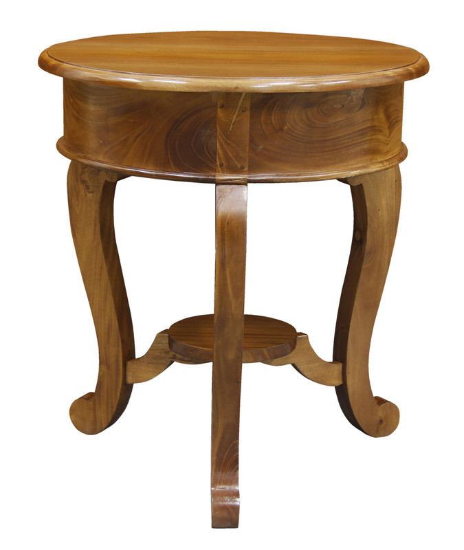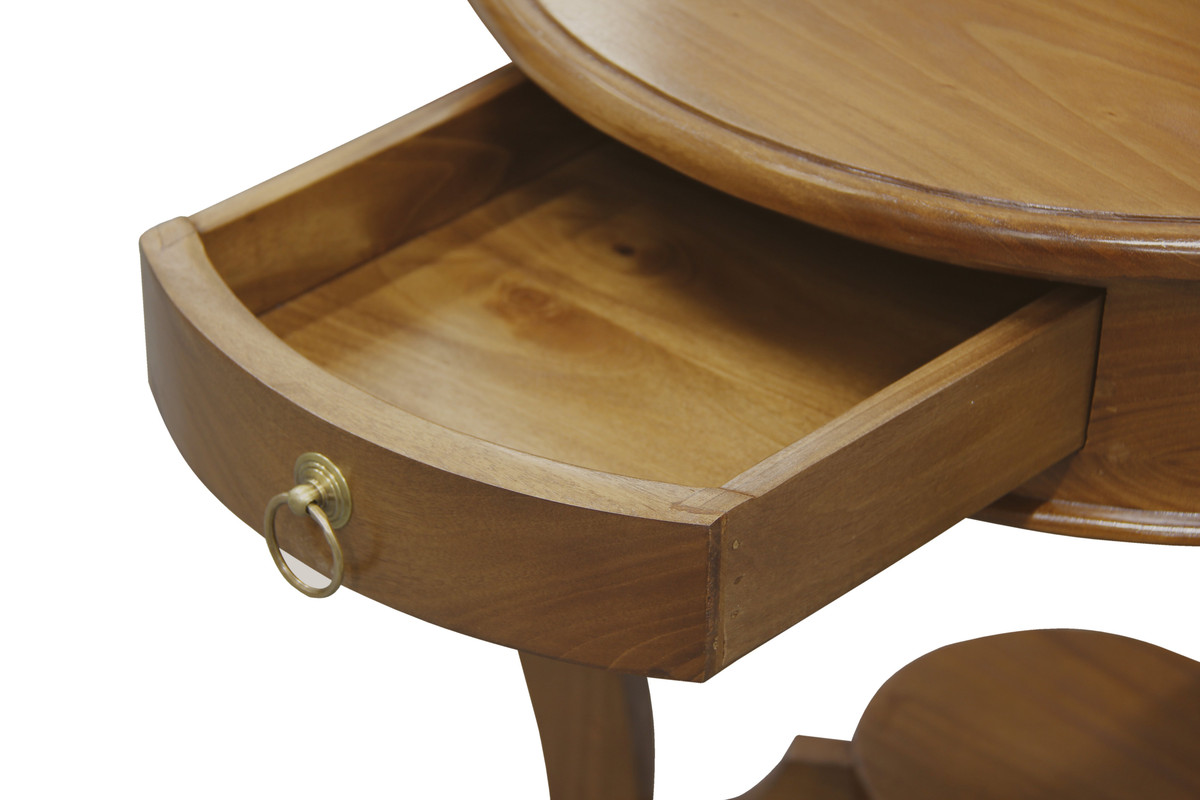 Round Cabriole Leg 1 Drawer Lamp Table (Light Pecan)