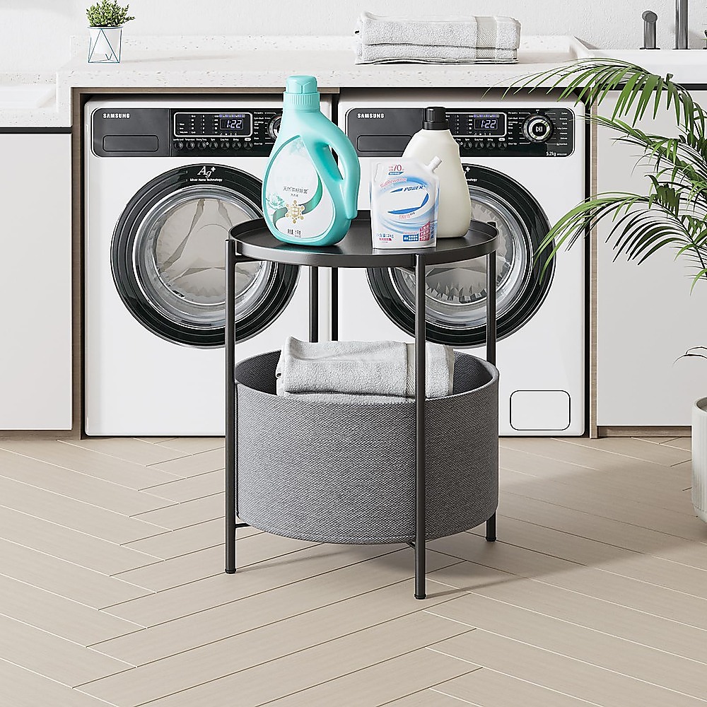 Its versatile design features a removable top tray for convenient access and a bottom fabric basket for additional storage solutions. Perfect for a variety of uses, it excels as a bedside table, keeping essentials like your phone, clock, and lamp close at hand. Alternatively, it functions beautifully as a sofa side table, ideal for snacks, drinks, and keeping items like phones, magazines, and remote controls within easy reach.