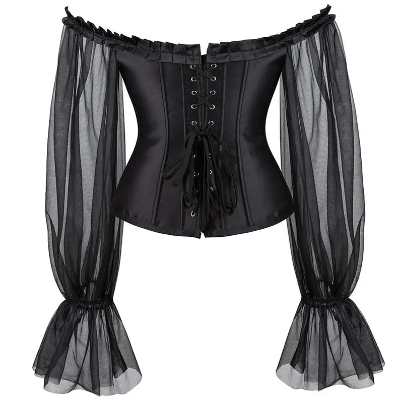• 1 x Ruffled Gothic Corselet Top With Puff Sleeves And Lace-Up Boning Transparent Satin Overbust Corset For Women