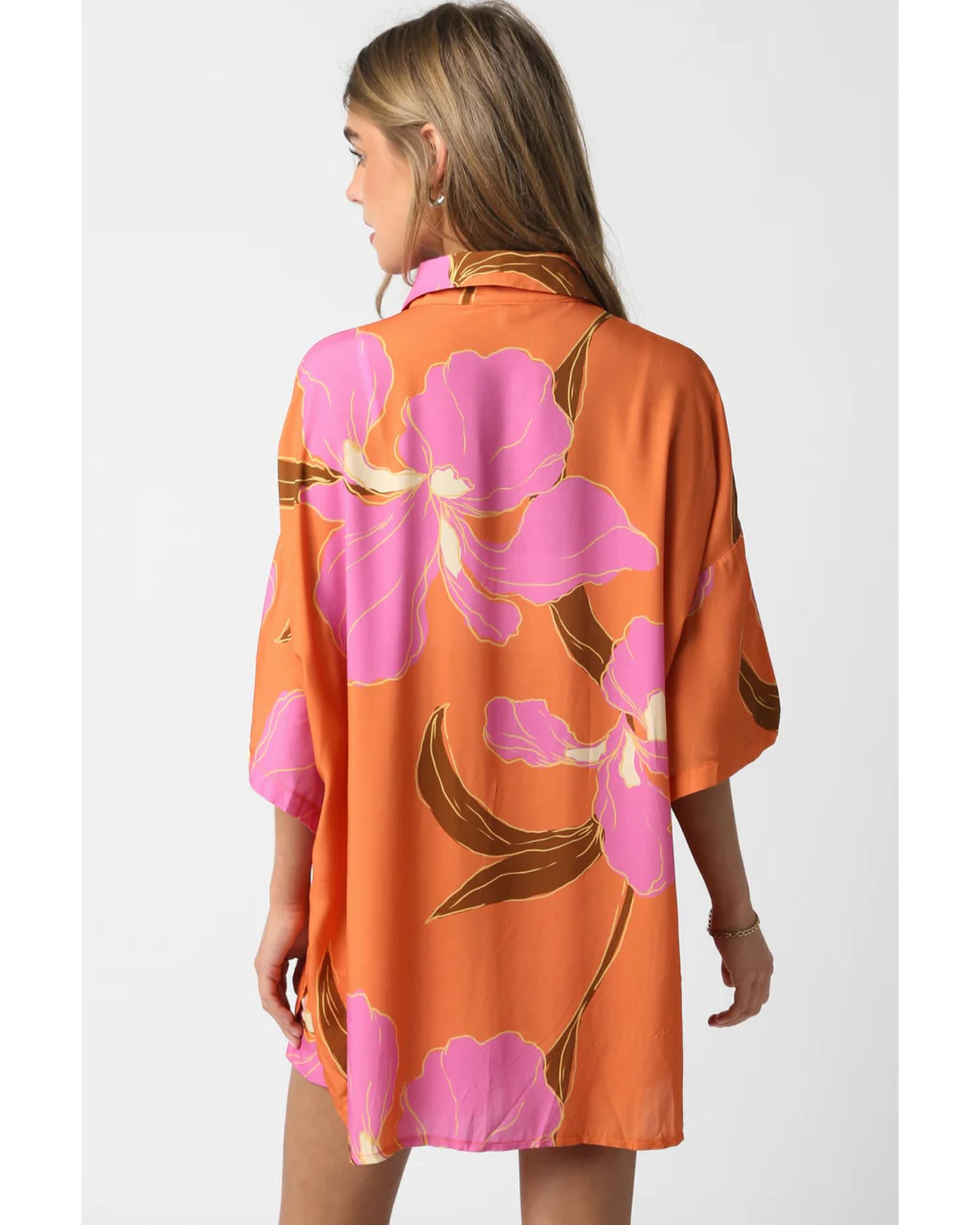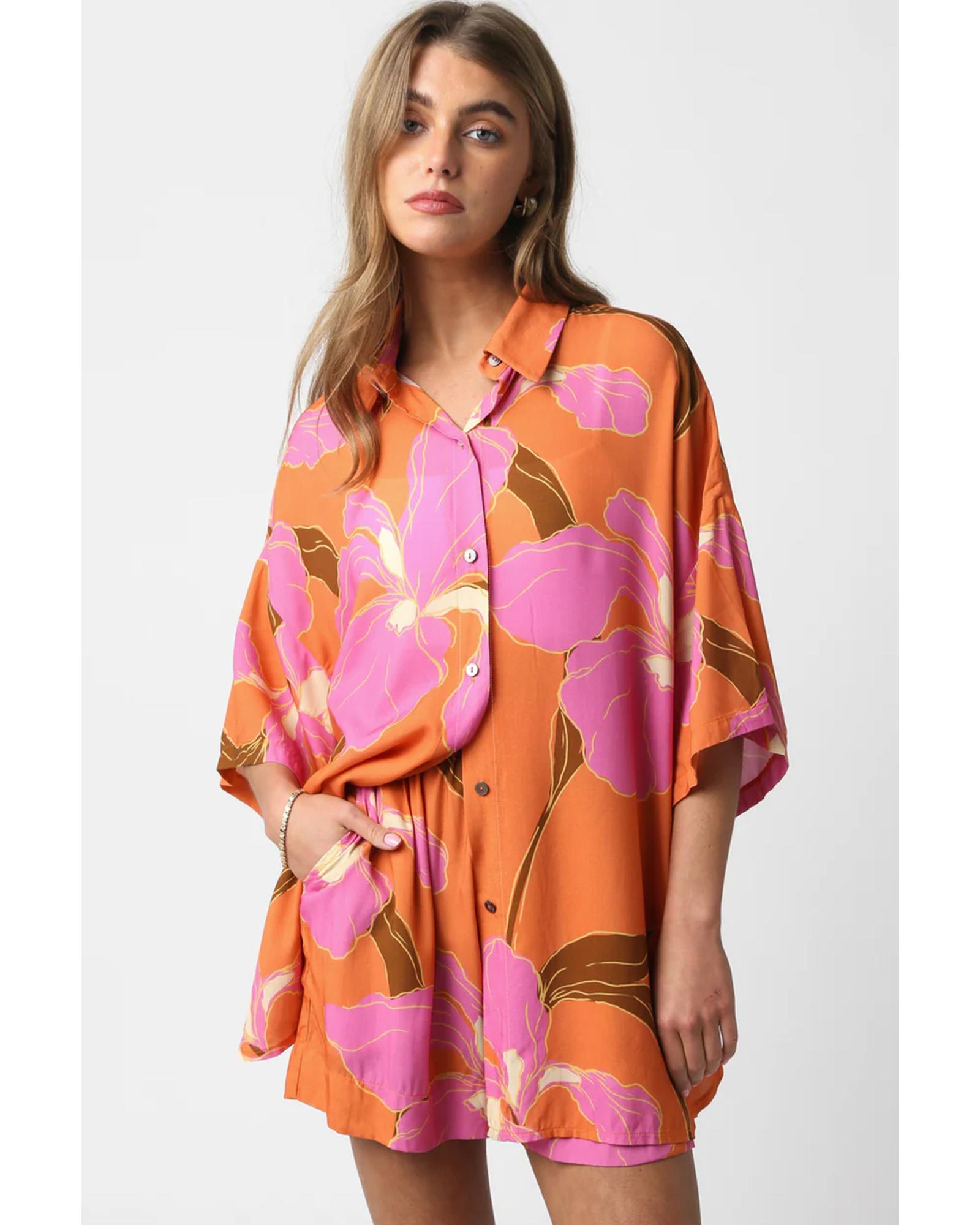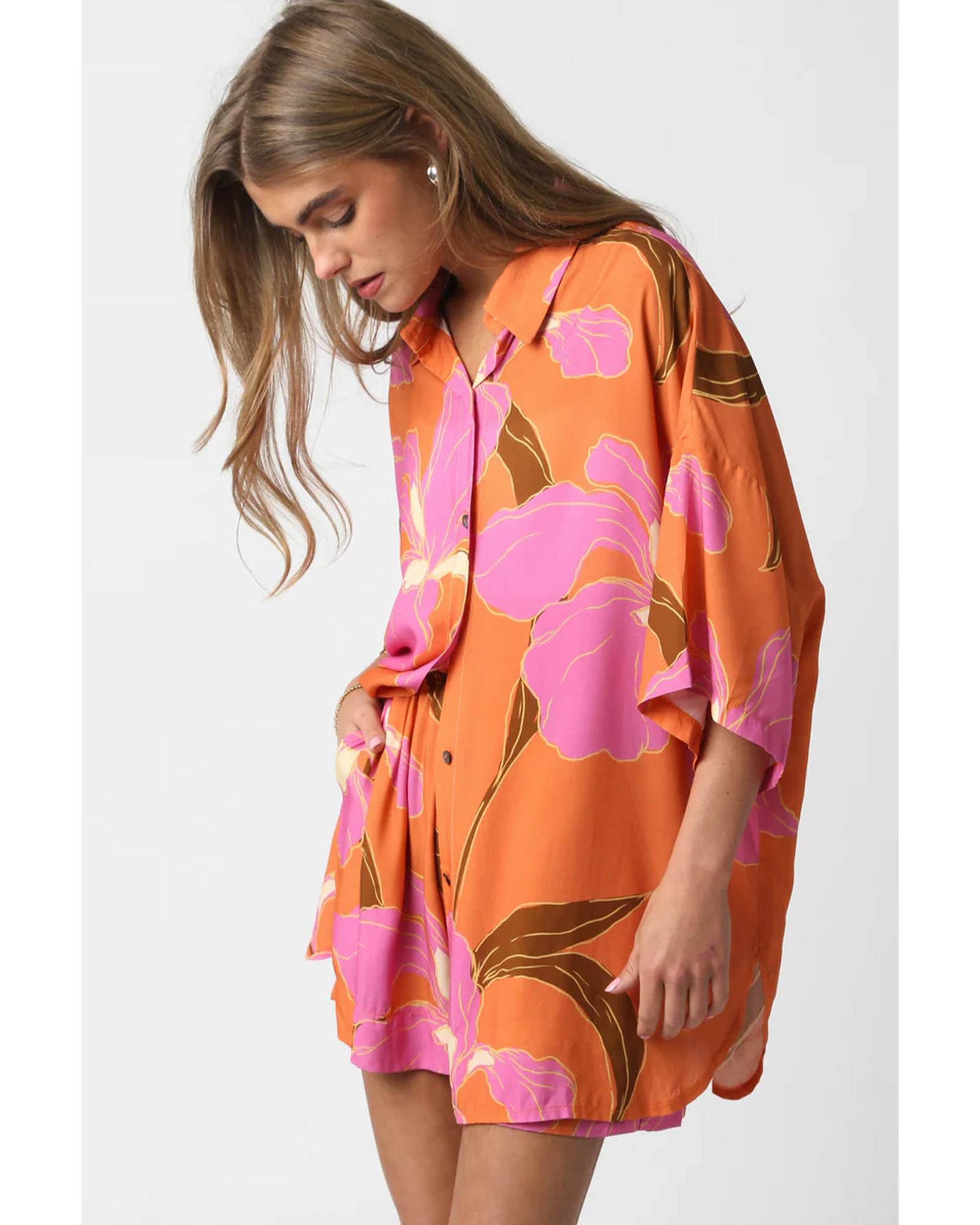 Russet Orange Floral Print Tunic Shirt and Shorts Set – XL