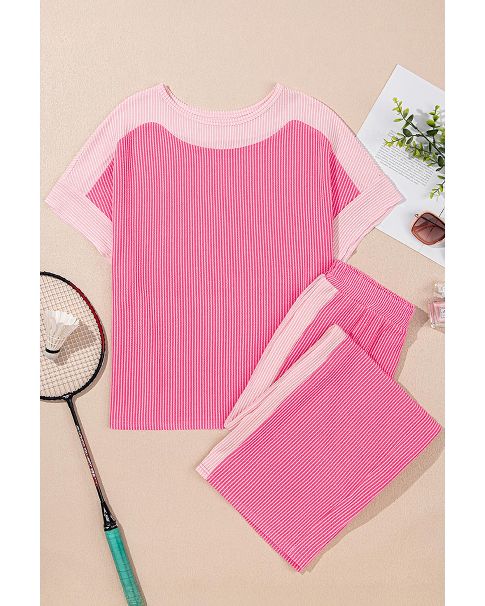Sachet Pink 2-tone Colorblock Patchwork Corded 2pcs Outfit – S
