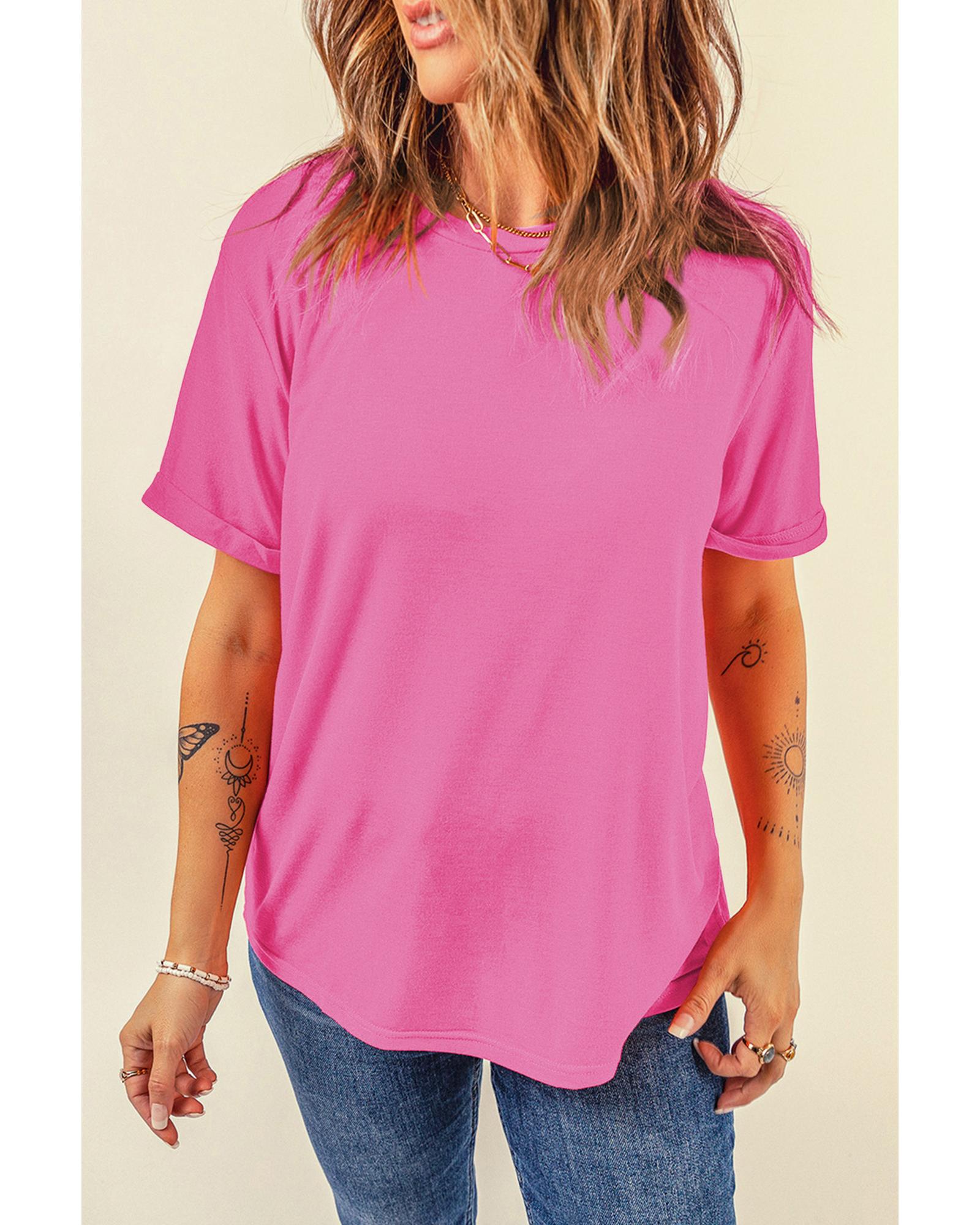 Sachet Pink Bright Casual Plain Crew Neck Tee – 2XL