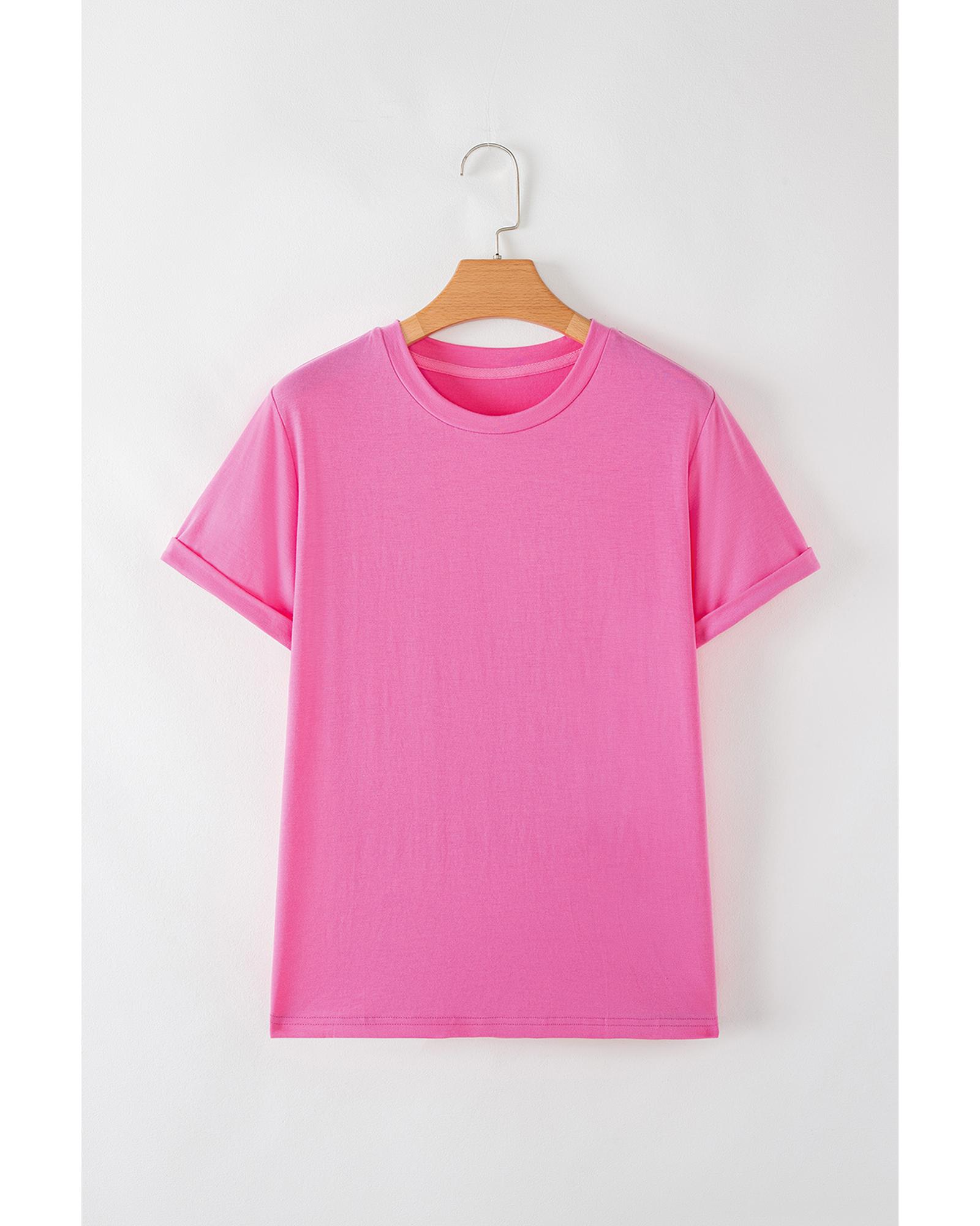 Sachet Pink Bright Casual Plain Crew Neck Tee – S