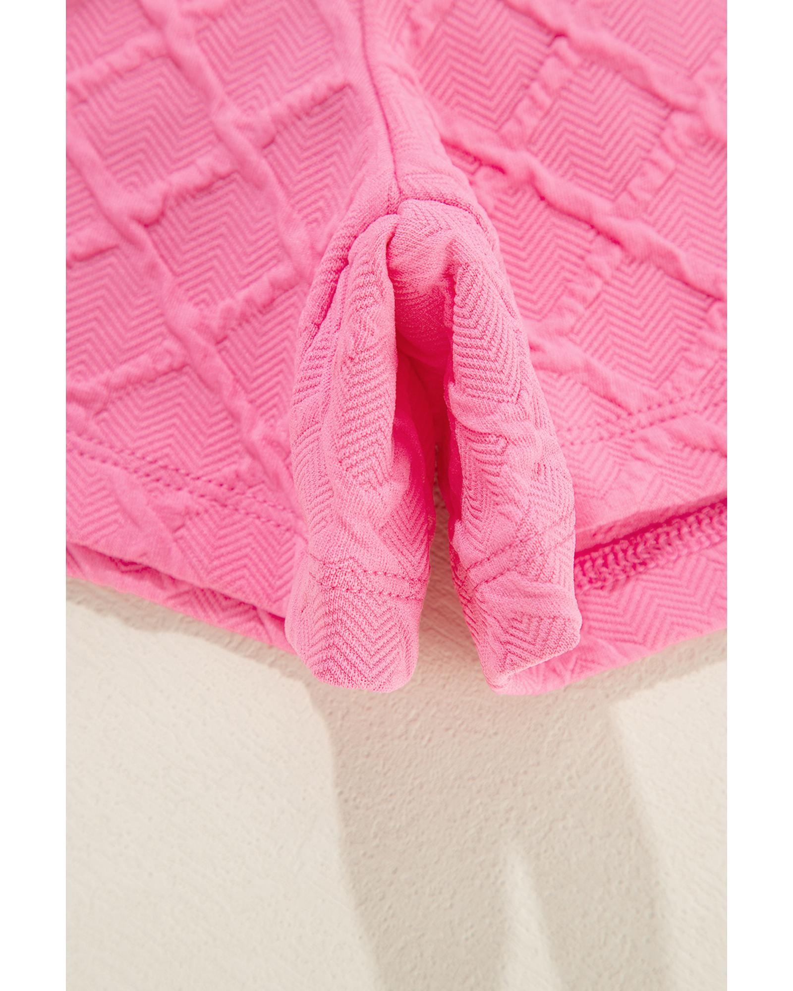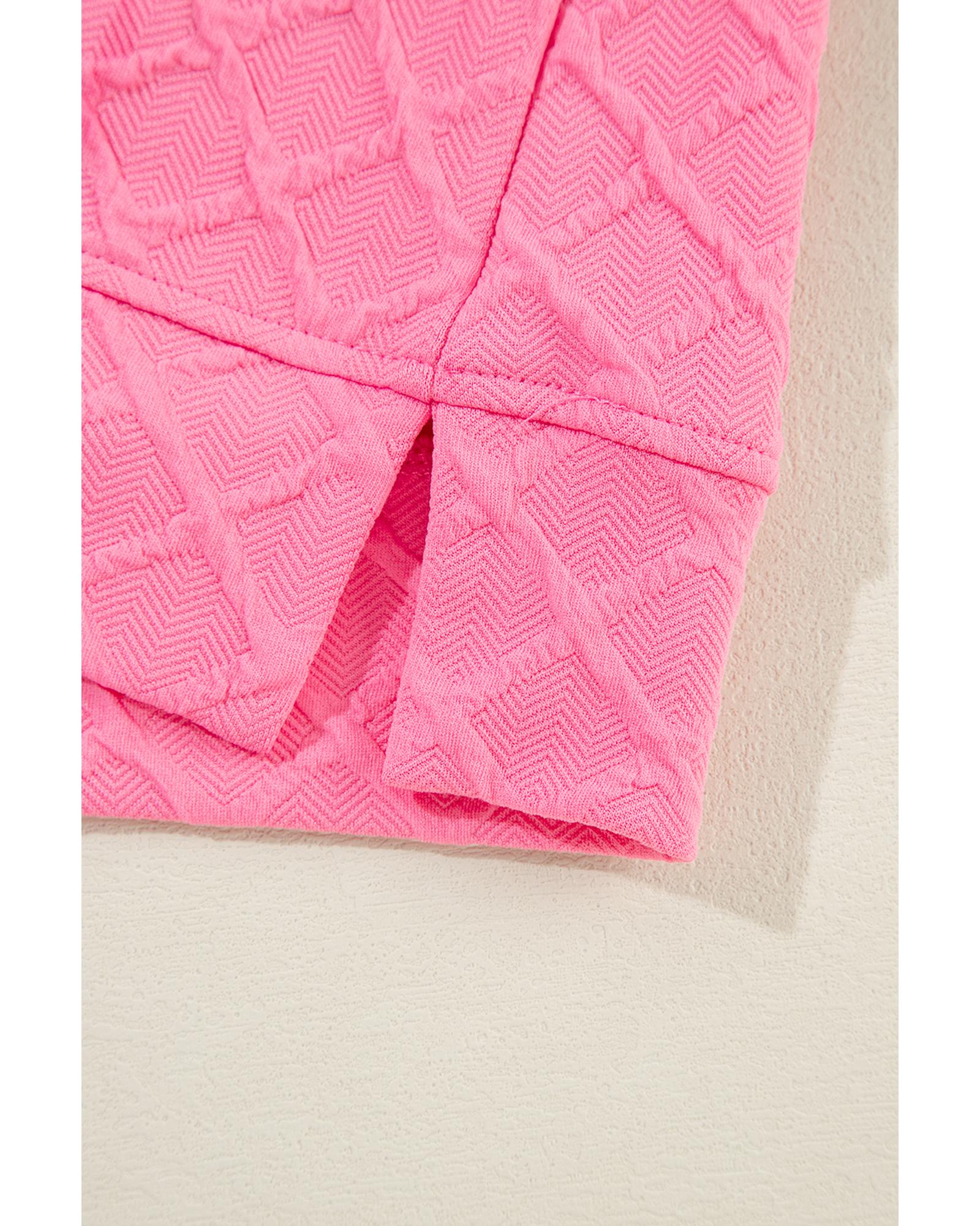 Sachet Pink Checkered Textured Tee and Drawstring Shorts – L
