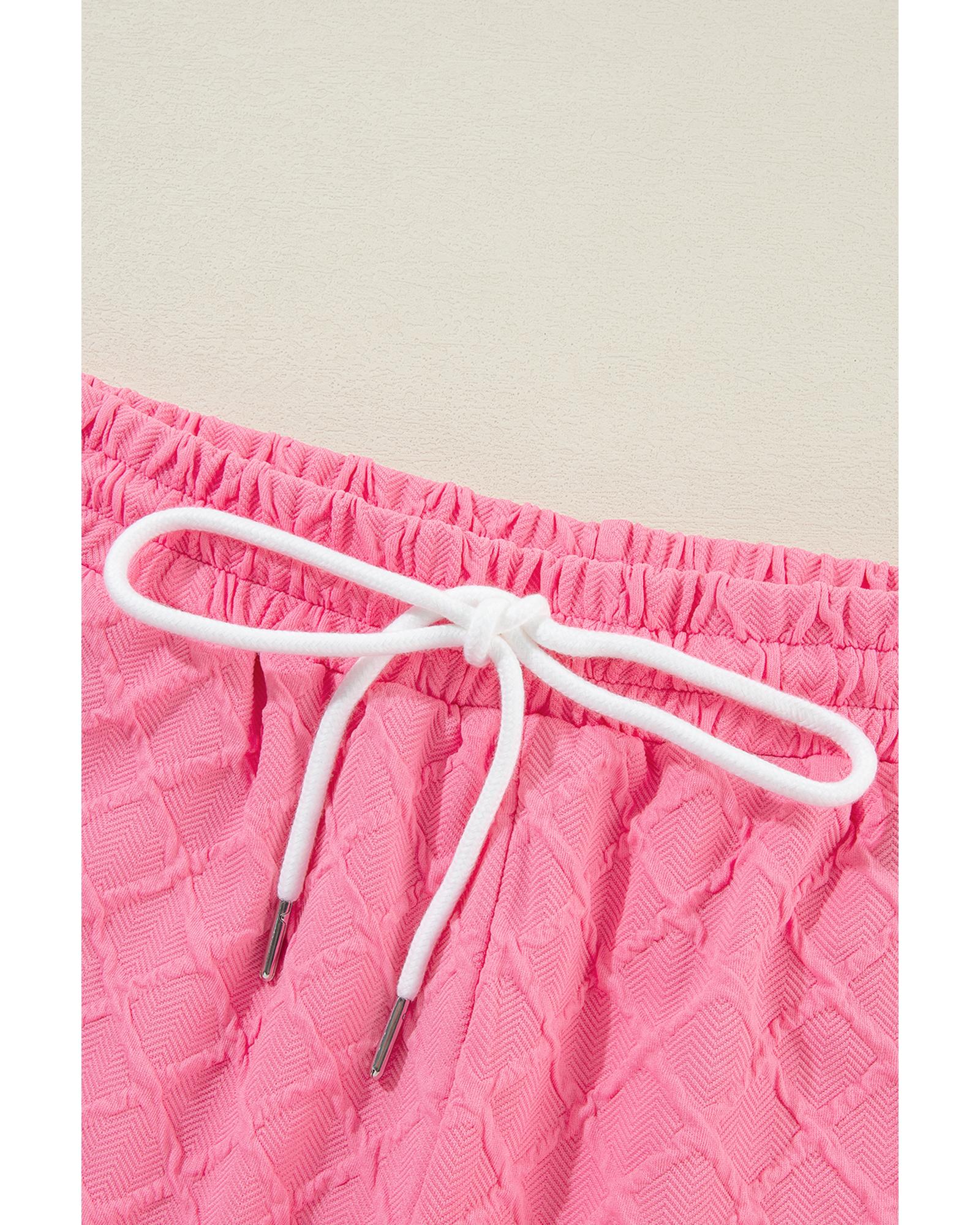 Sachet Pink Checkered Textured Tee and Drawstring Shorts – XL