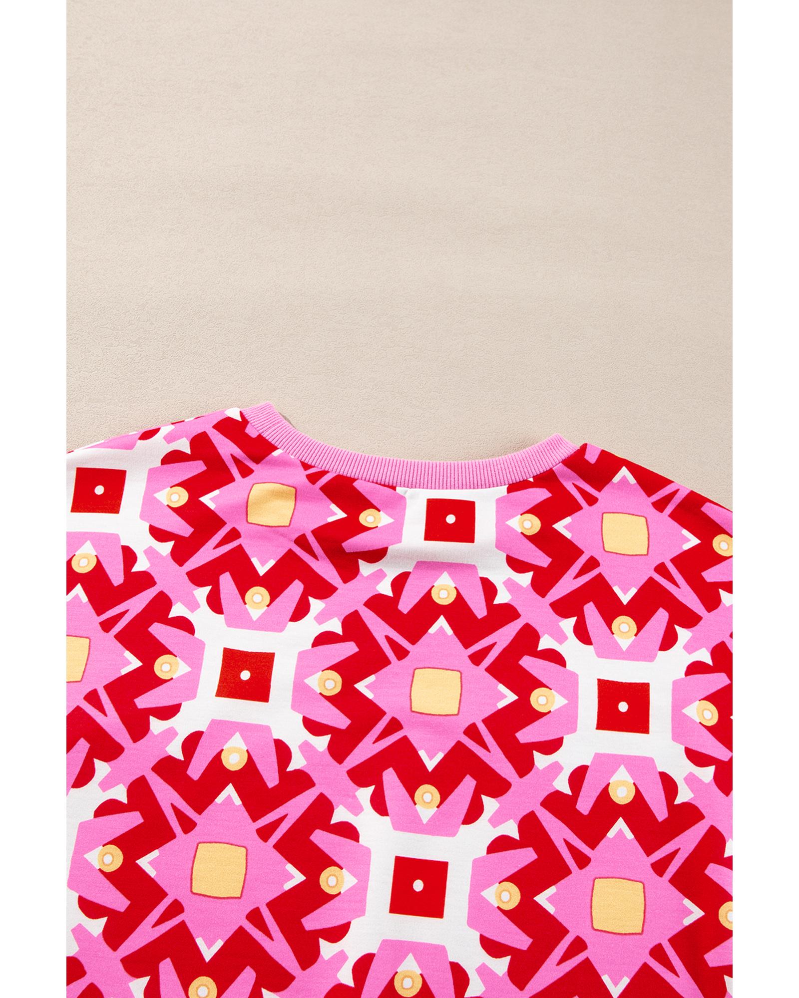 Sachet Pink Geometric Print Long Sleeve Top and Drawstring Shorts Set – M