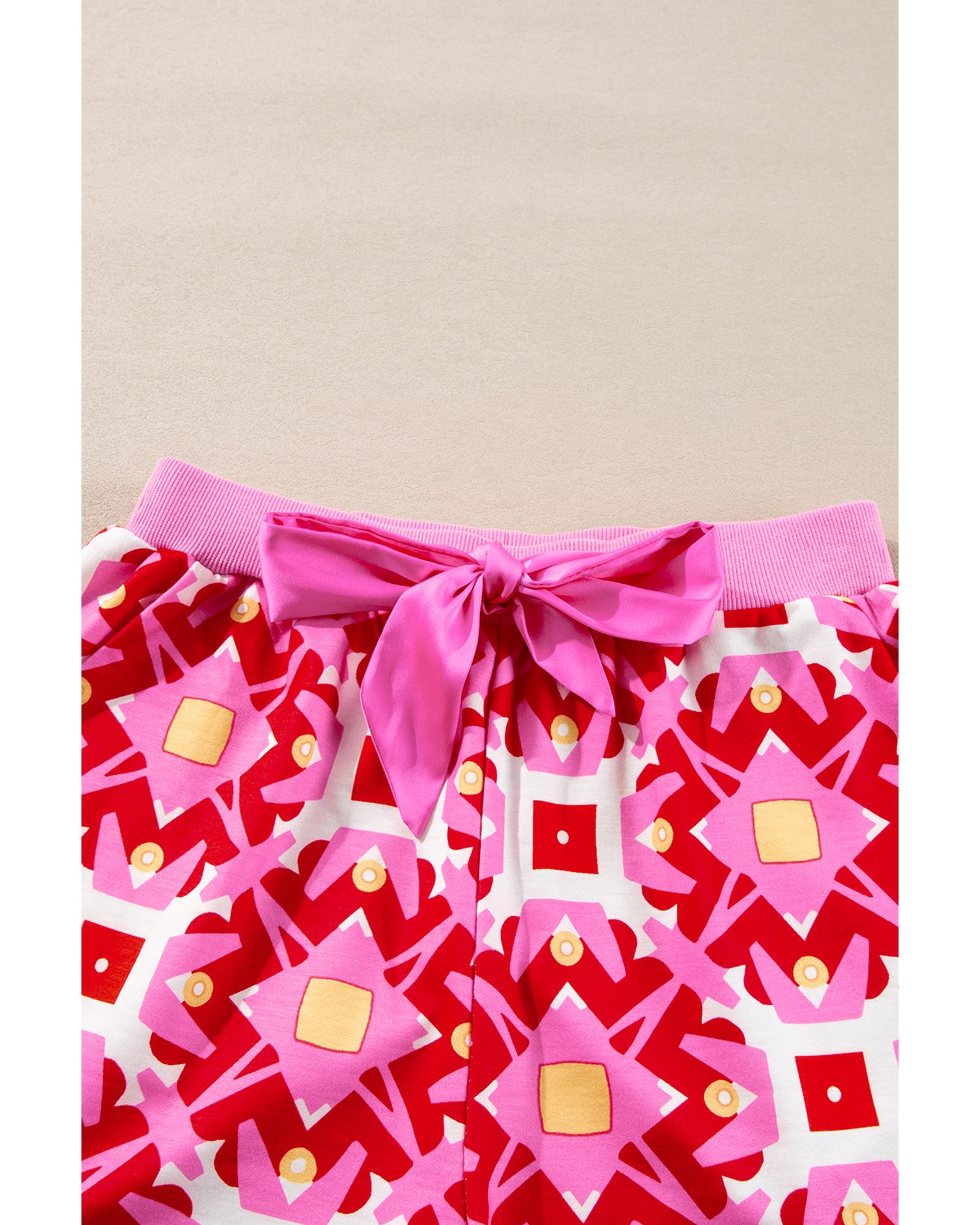 - Sachet Pink Geometric Print Long Sleeve Top and Drawstring Shorts Set