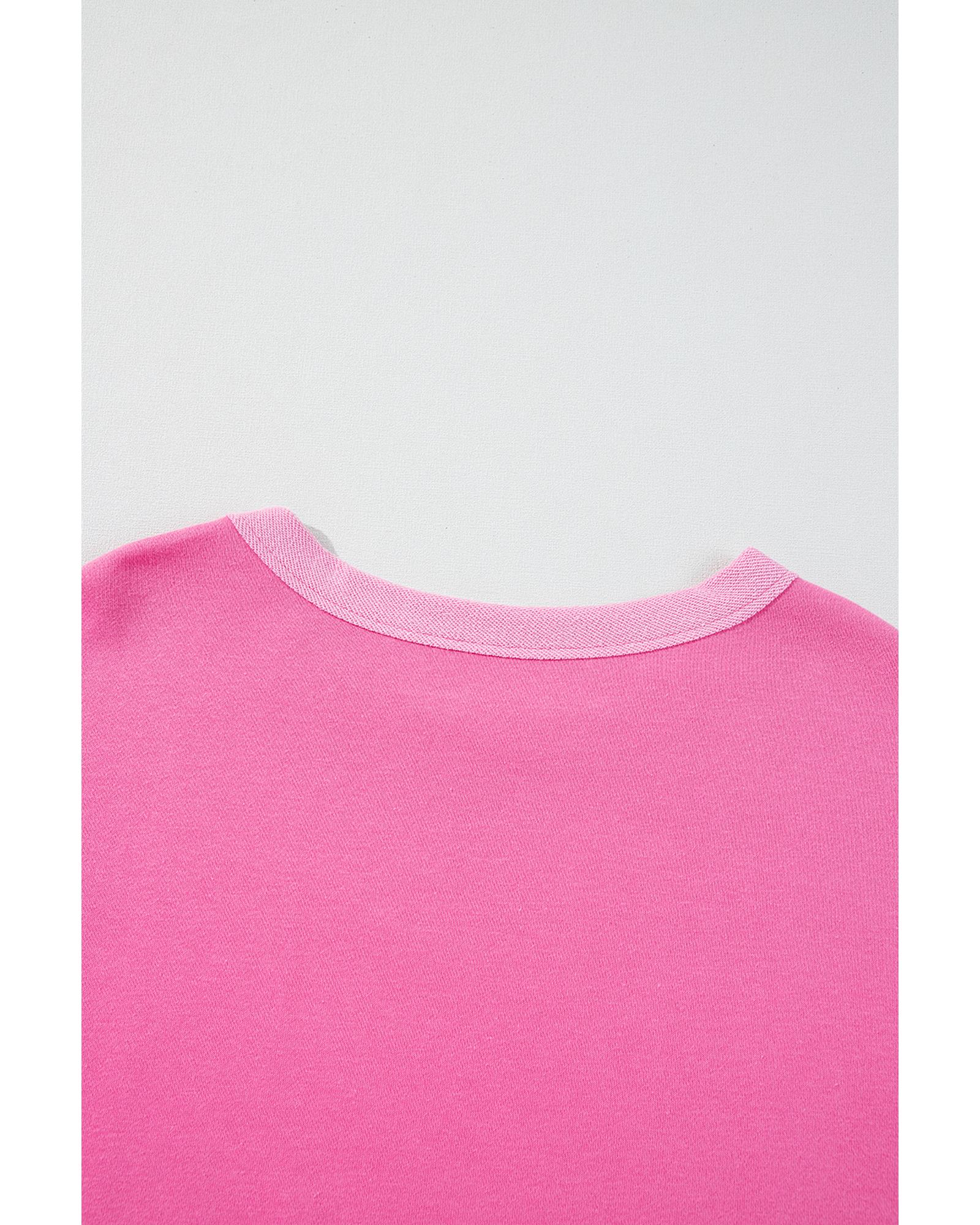 - Sachet Pink High Low Patchwork Long Sleeve Top and Shorts Set