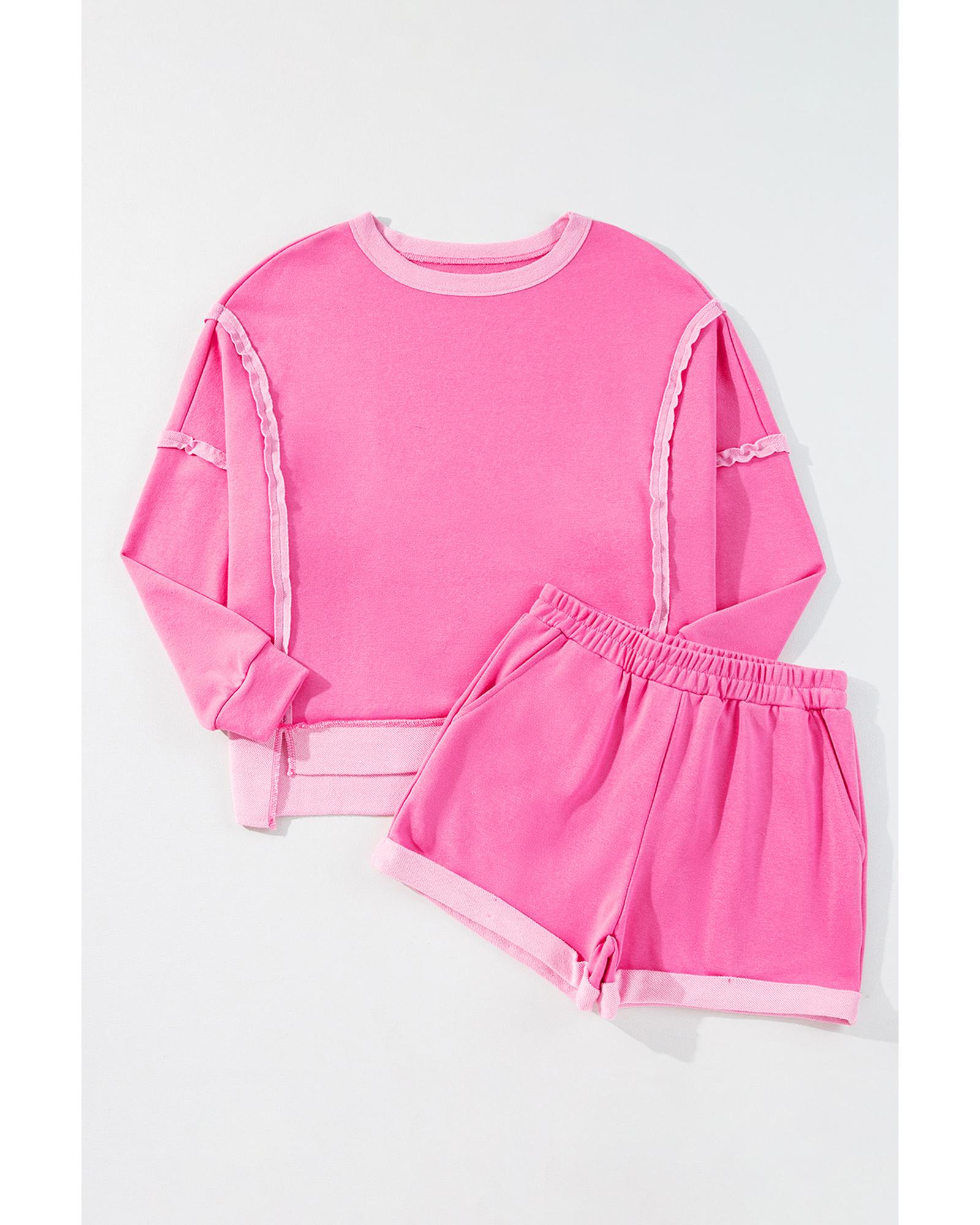 Sachet Pink High Low Patchwork Long Sleeve Top and Shorts Set – XL