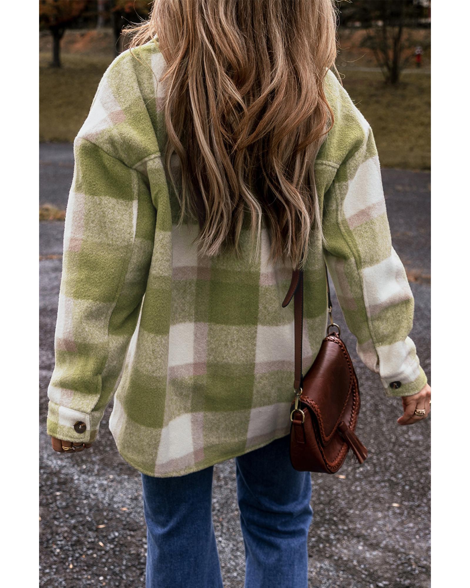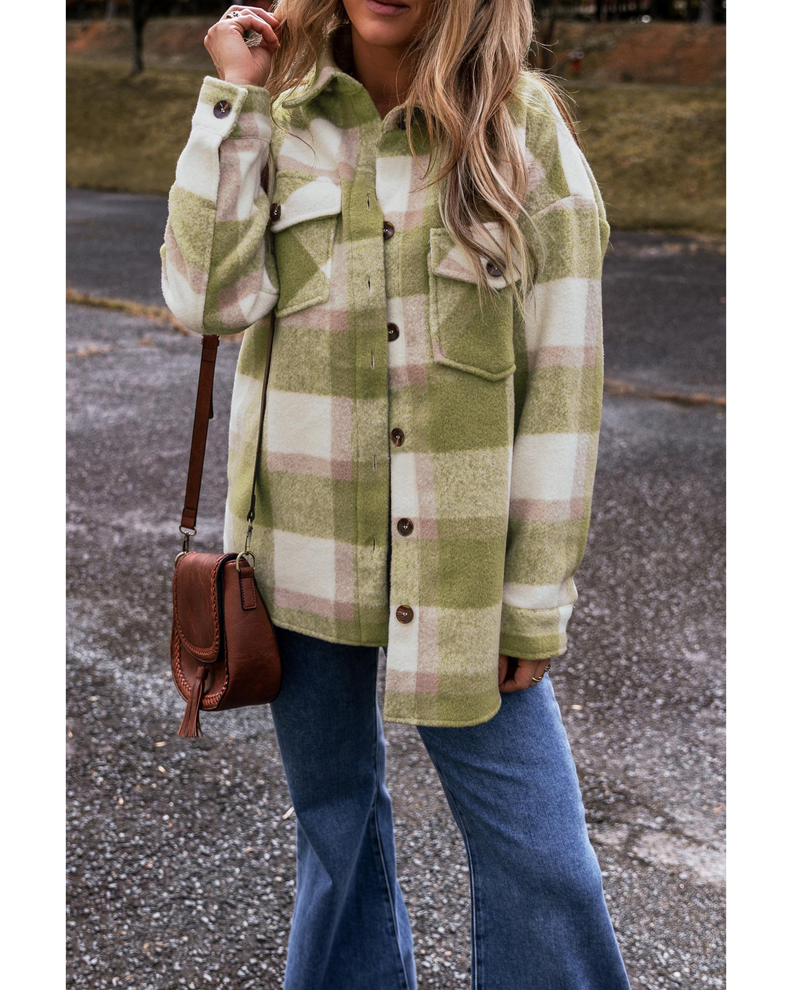 Sage Green Plaid Print Buttoned Flap Pockets Baggy Shacket – XL