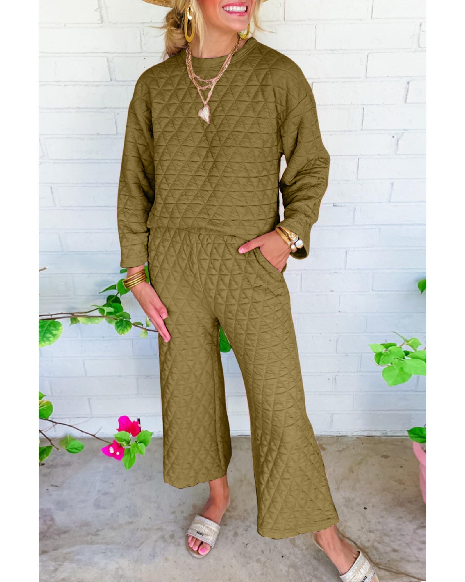 Stylish and popular quilted design Includes quilted pullover top and matching pants Soft and comfortable for all - day wear Perfect for casual occasions and can be paired with sneakers Versatile two