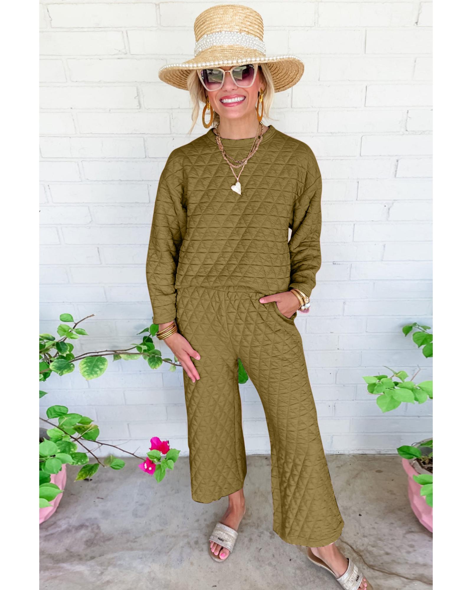 Sage Green Solid Quilted Pullover and Pants Outfit – S