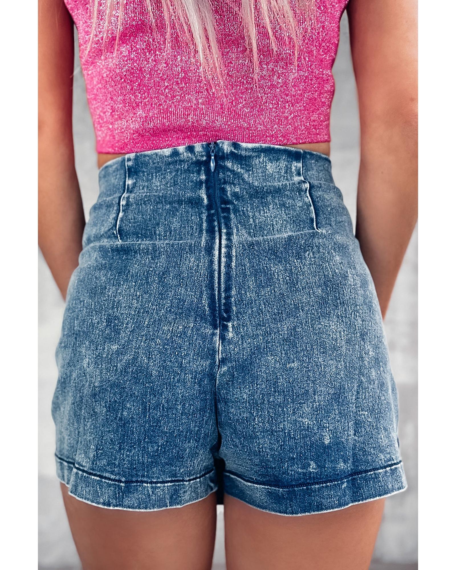 Sail Blue Acid Wash Asymmetric Twisted Wrapped Zipped Denim Skort - 12 US