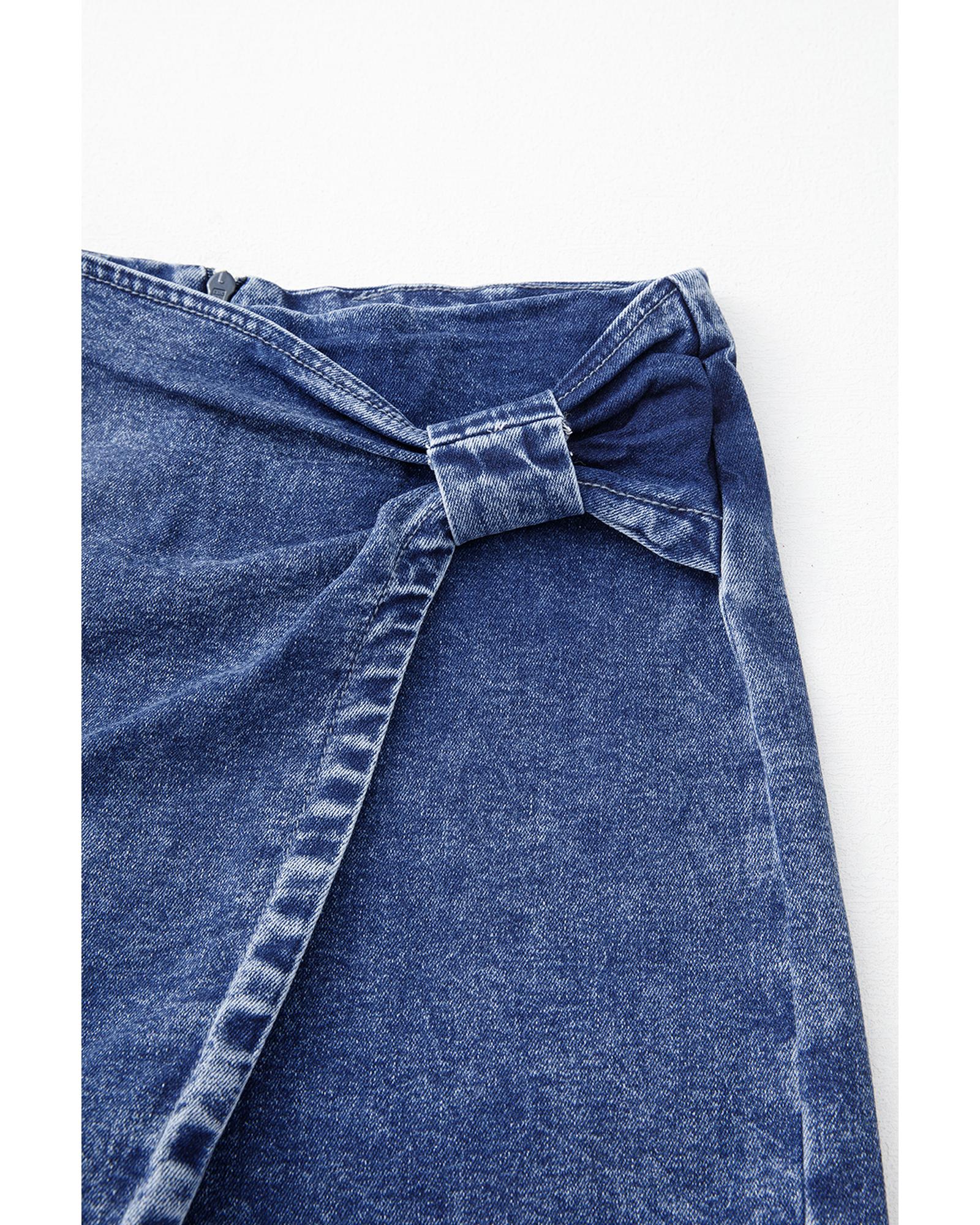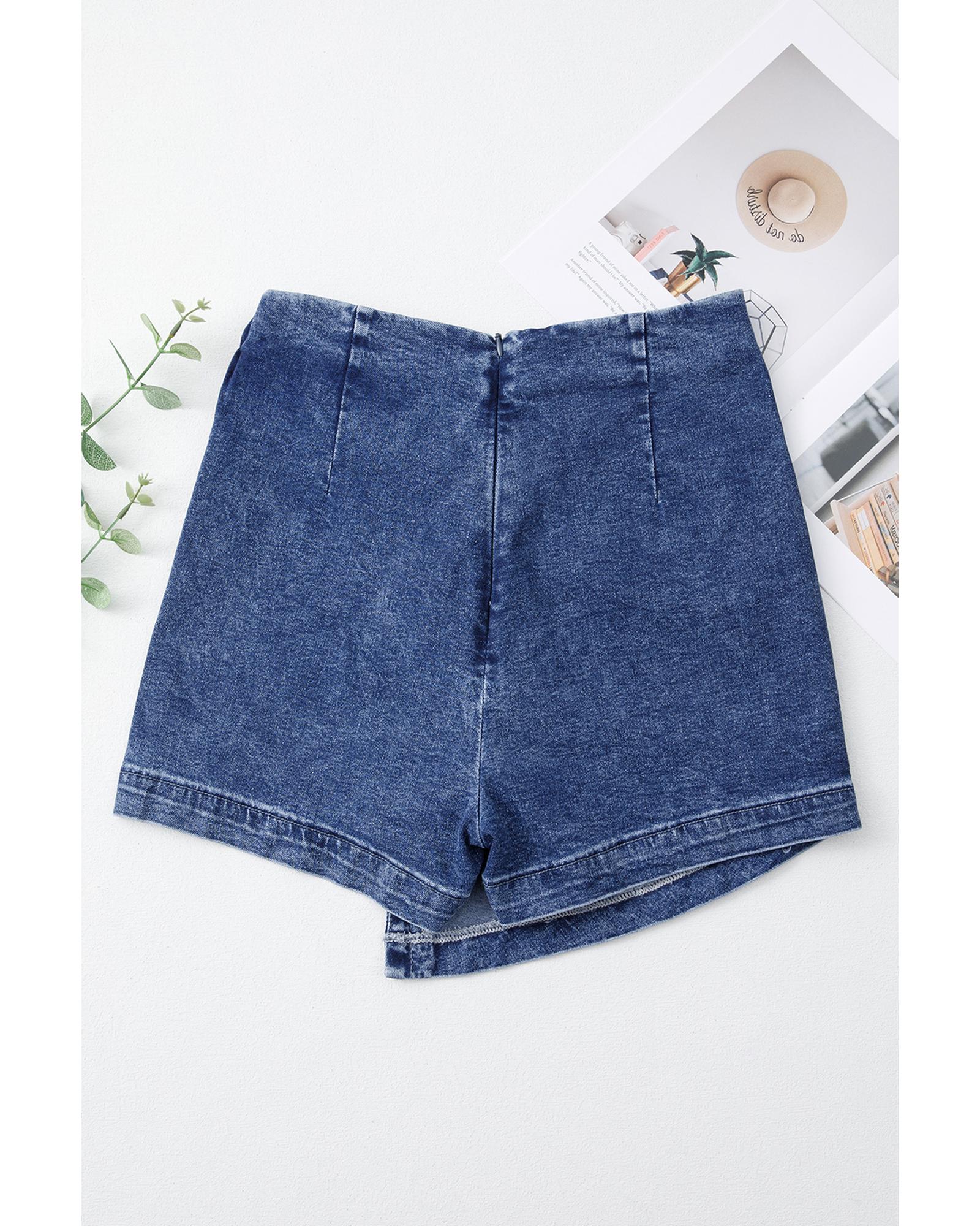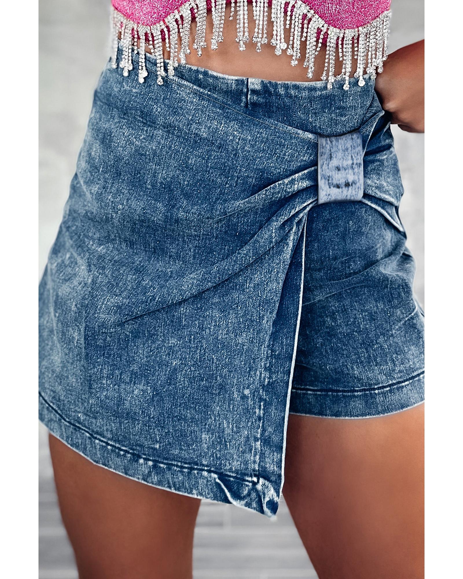 Sail Blue Acid Wash Asymmetric Twisted Wrapped Zipped Denim Skort - 10 US Original price was: $64.99.Current price is: $34.99.