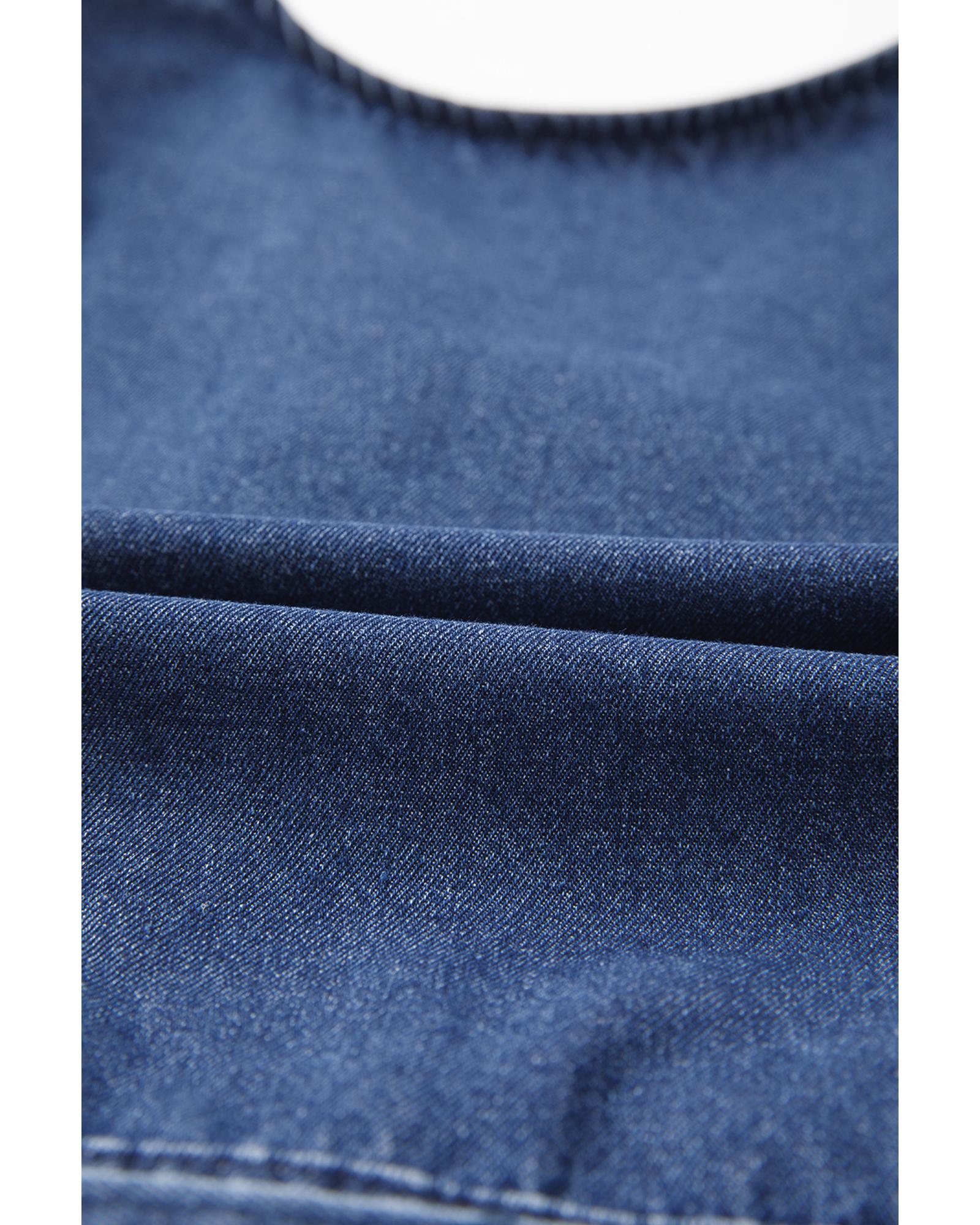 Sail Blue Denim Ruffled Zipped Front Belted Romper – XL