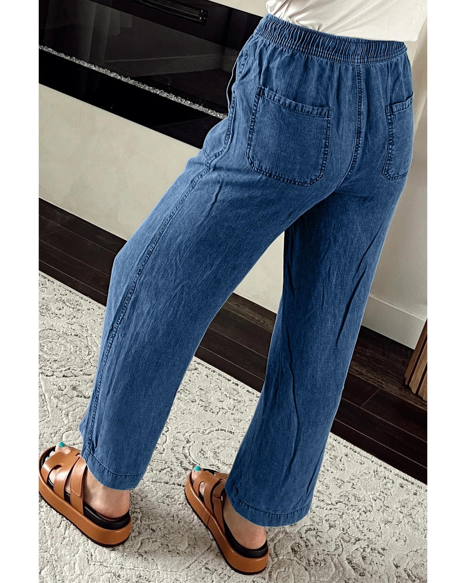 Sail Blue Mineral Wash Drawstring Waist Loose Straight Denim Pants – 10 US