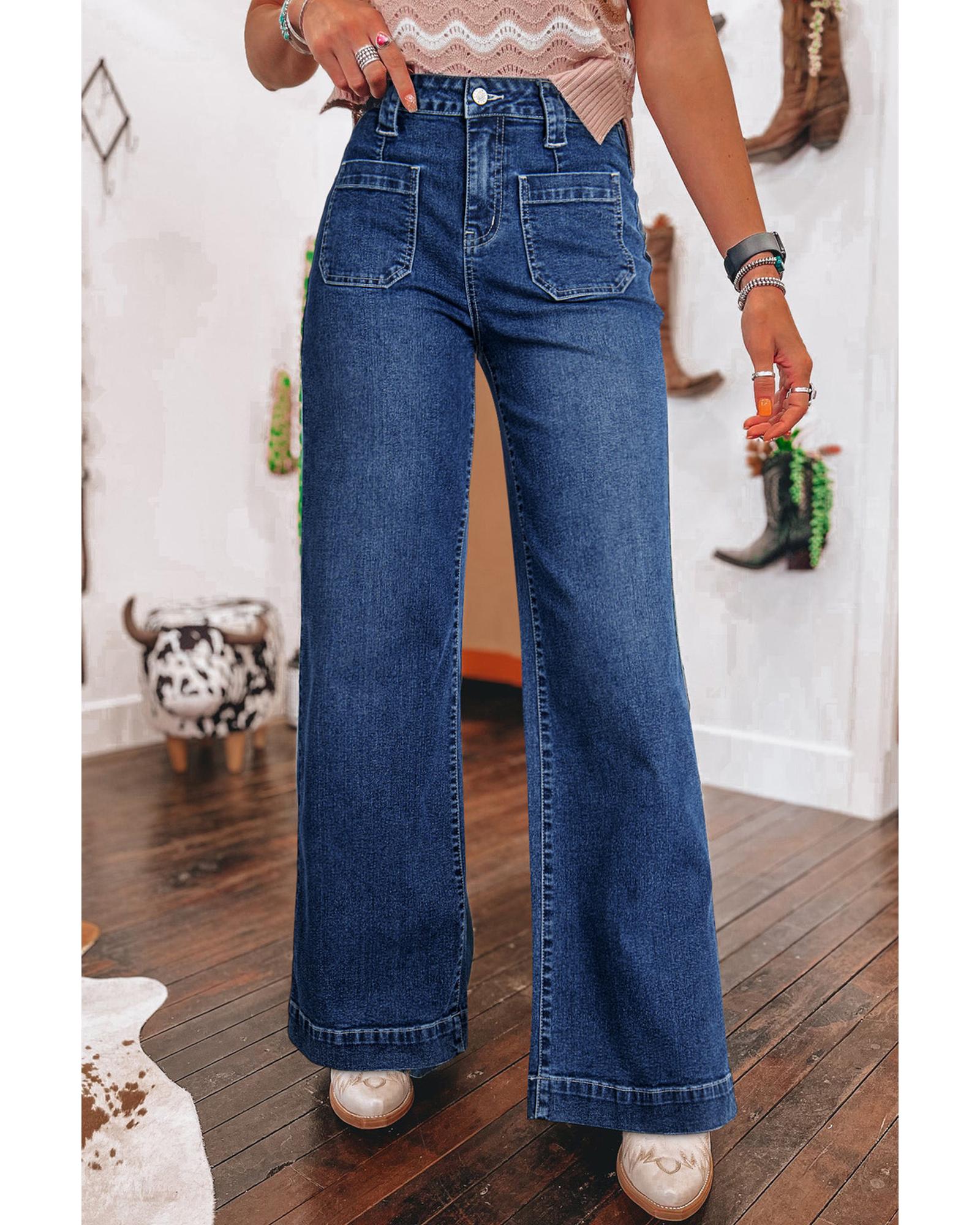- Sail Blue Wide Leg Pocketed High Waist Jeans