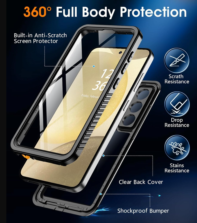 • Built-in Screen & HD Camera Protector: Oneagle Samsung S24 Plus Case provides 100% comprehensive front and back protection to your device with its built-in screen camera protector, maintains 99.99% response sensitivity and never scratches.The HD lens protector keeps the camera scratch-free, ensuring an ultra-clear photo-taking experience underwater.