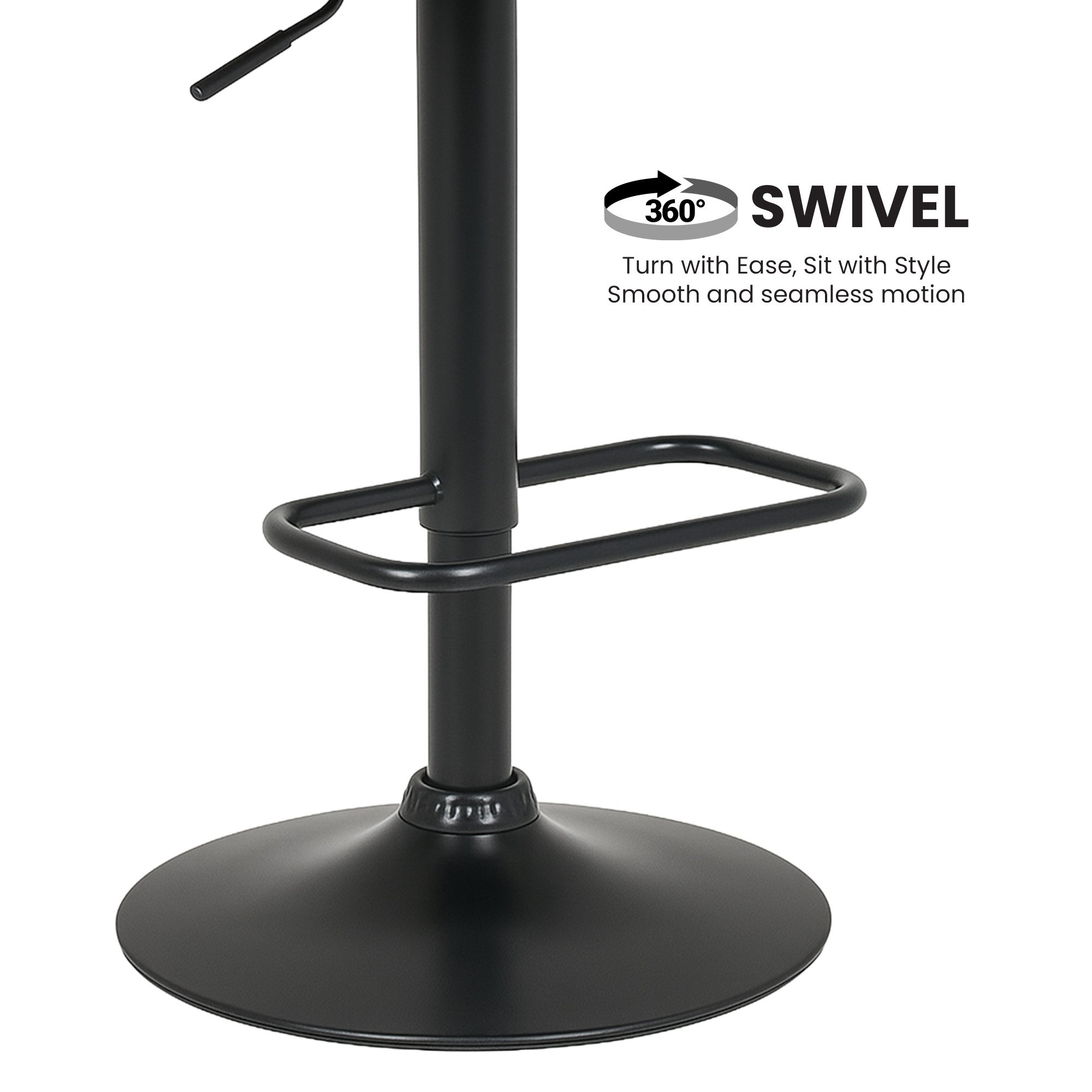 Functionality has never looked this refined. The Bentwood Barstool features a curved walnut backrest paired with a sleek black faux leather seat for long-lasting comfort. It's 360° swivel, gas-lift height adjustment, and heavy-duty powder-coated base offer adaptable support in any setting. With a water-resistant finish and versatile design, it suits kitchen counters, home bars or casual dining spaces.