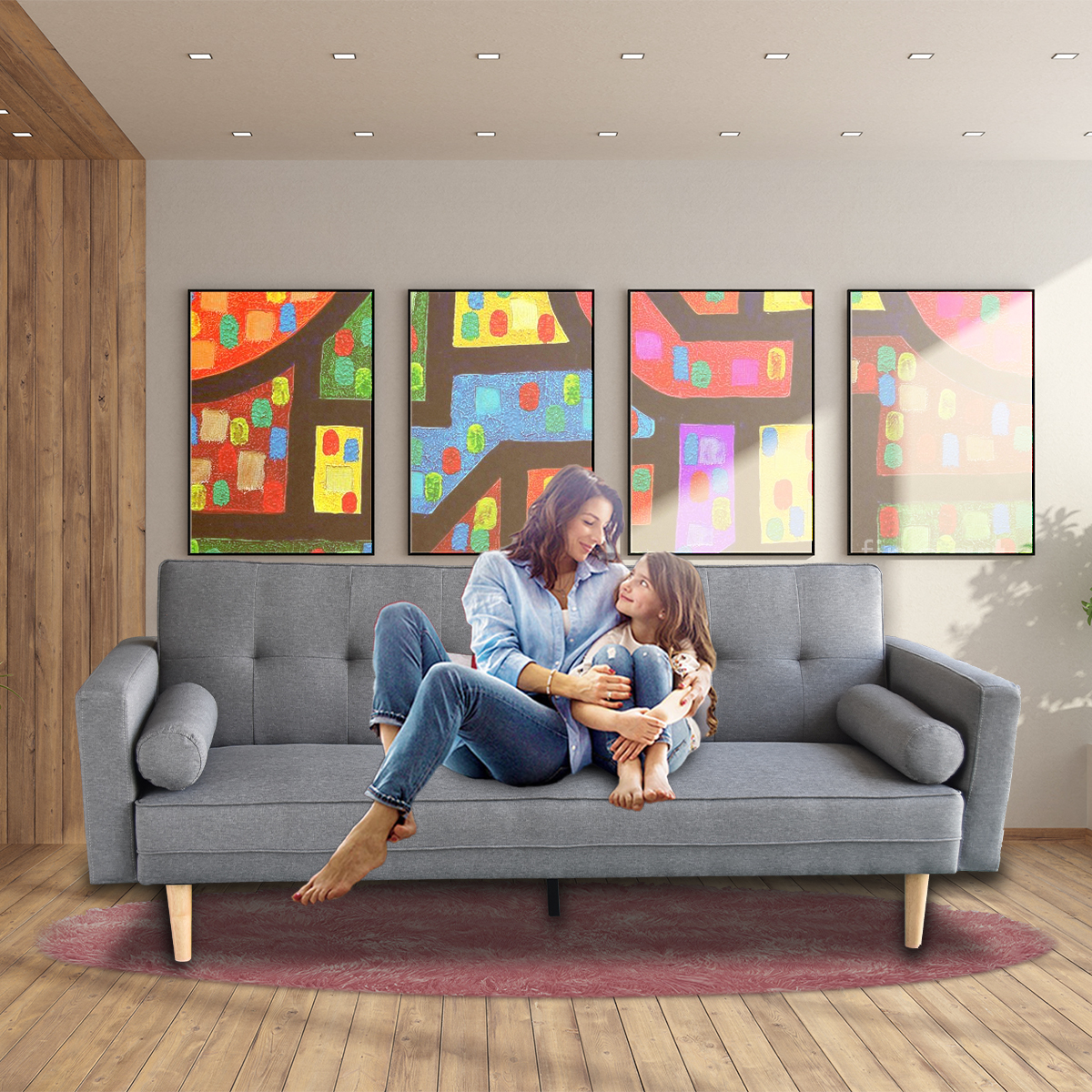 Sarantino Madison Sofa Bed Lounge Couch Futon Furniture Home Light Grey Linen Suite
