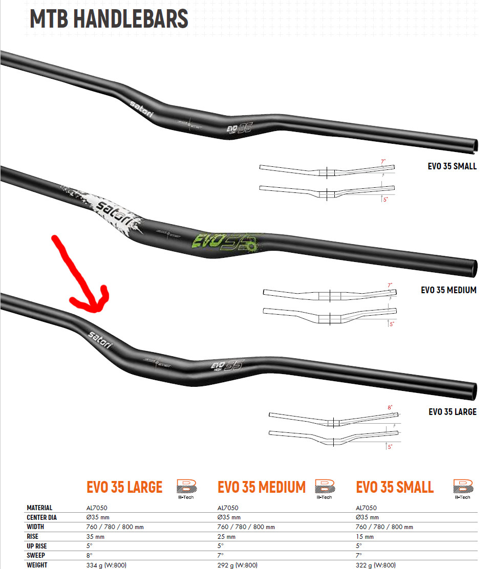 Satori EVO 35 Small - 355mm Rise Handlebar - Black MTB Trekking Universal 780mm Long