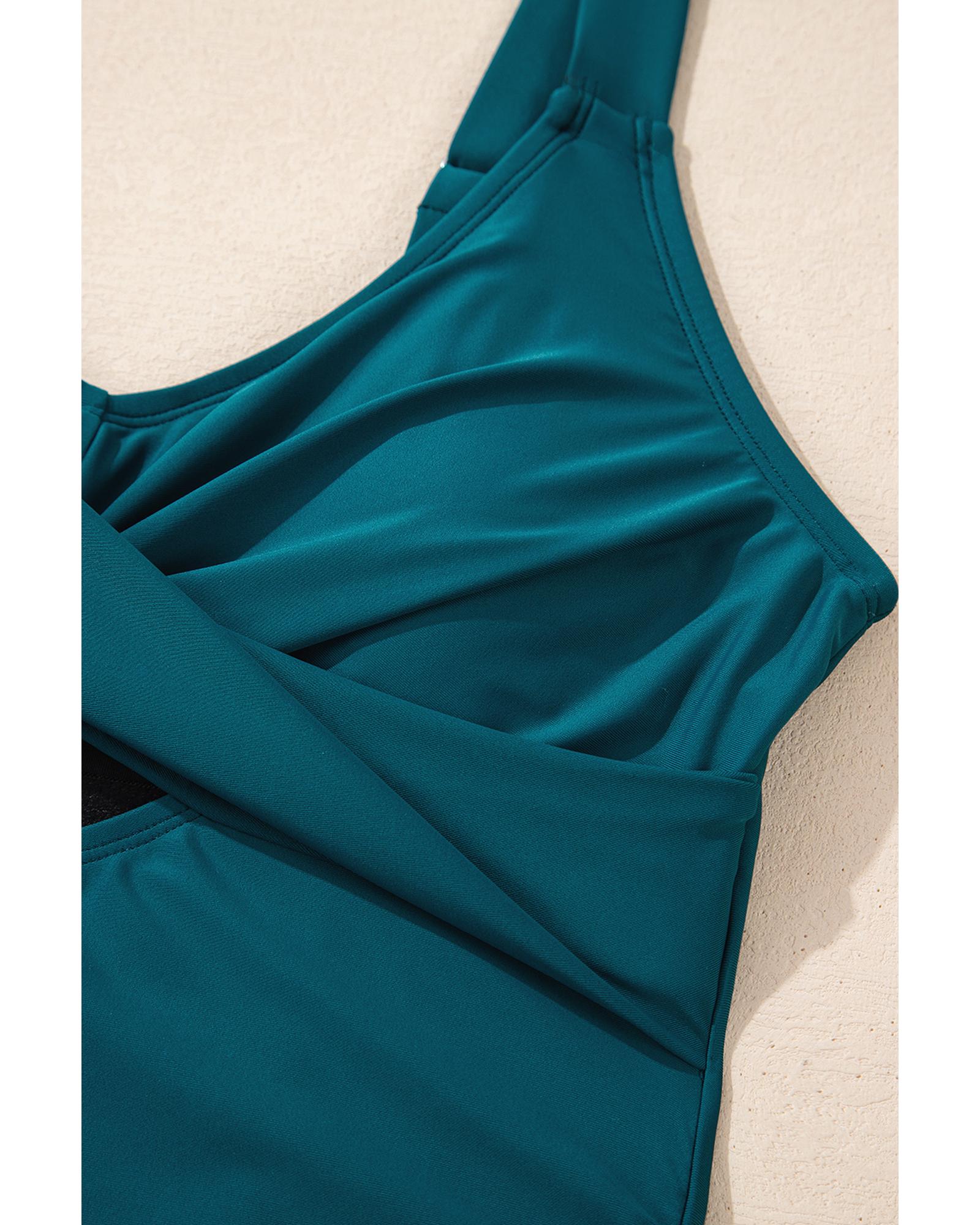 Sea Green Adjustable Straps Cutout Ruched Knot Slit One Piece Swim Dress – S