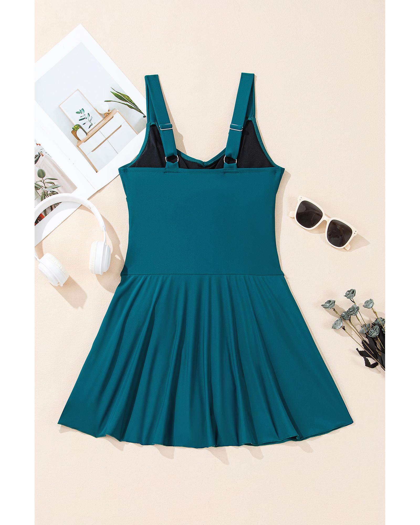 Sea Green Adjustable Straps Cutout Ruched Knot Slit One Piece Swim Dress – XL