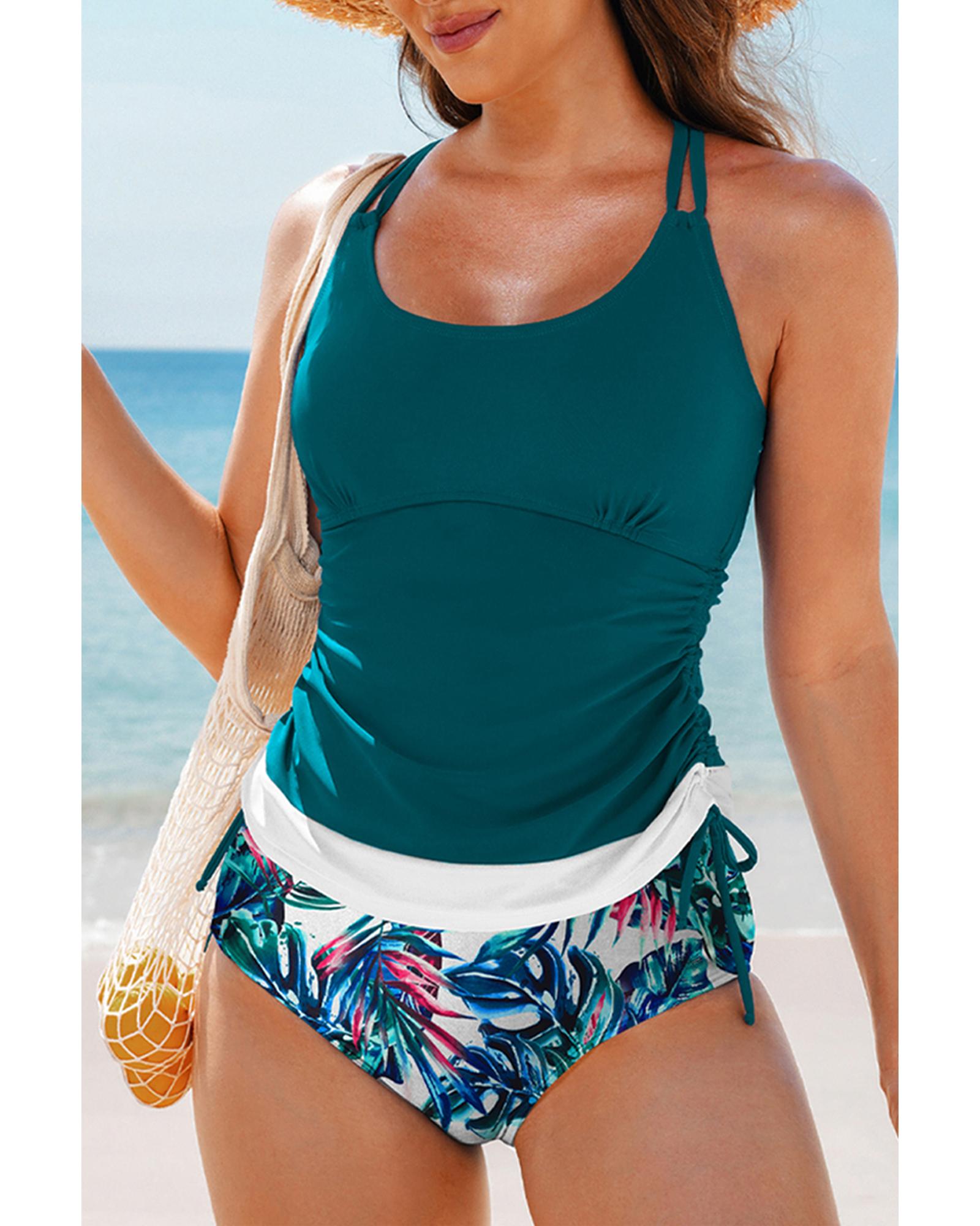 Sea Green Drawstring Tummy Control Mix-and-match 2pcs Tankini Swimsuit – 2XL