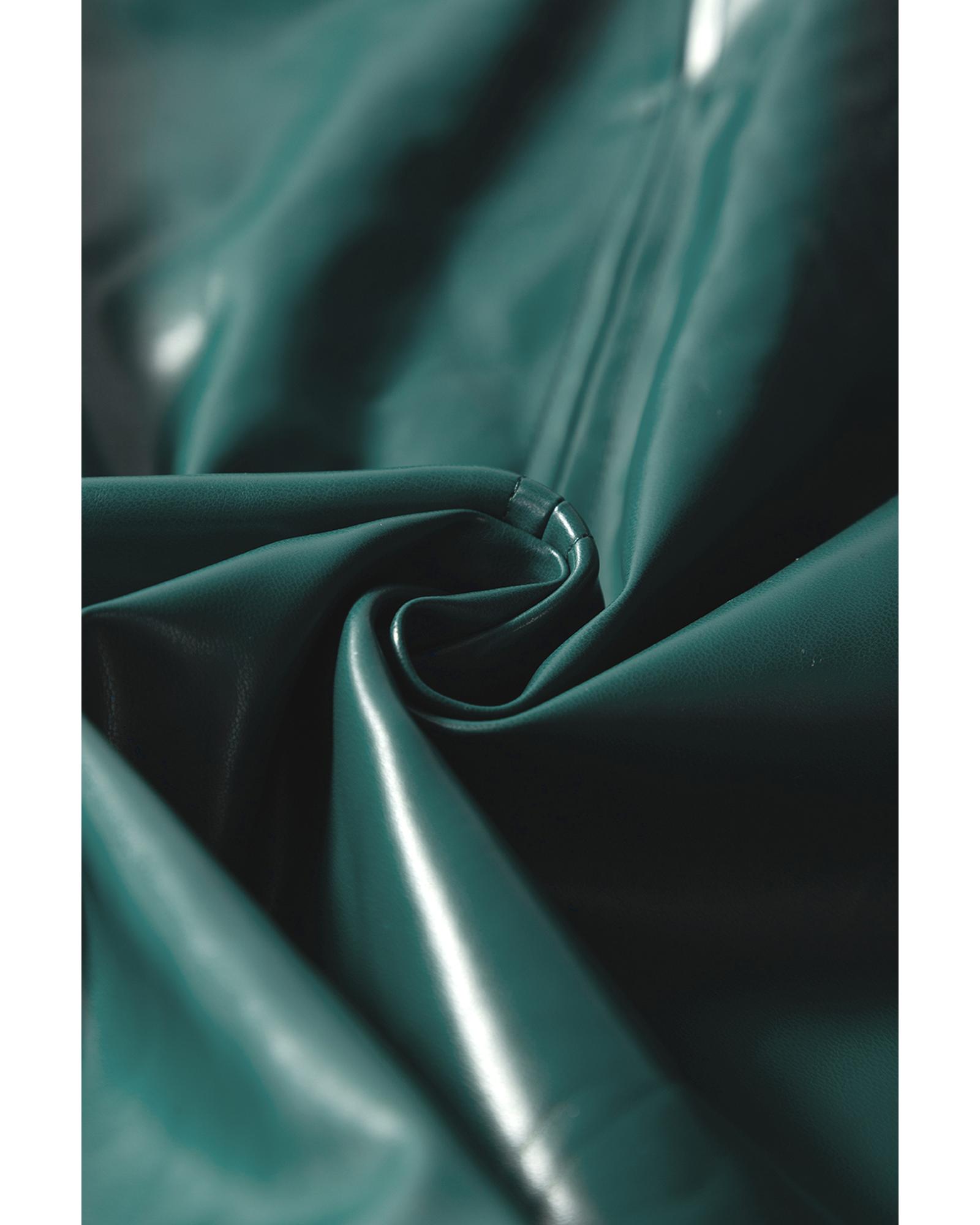 Sea Green Notched V Neck Short Puff Sleeve PU Leather Blouse – L