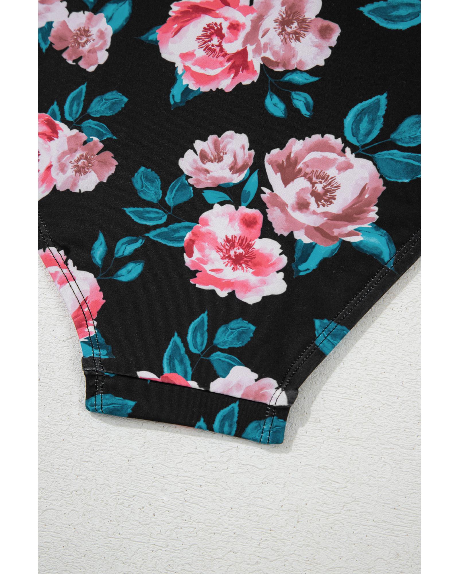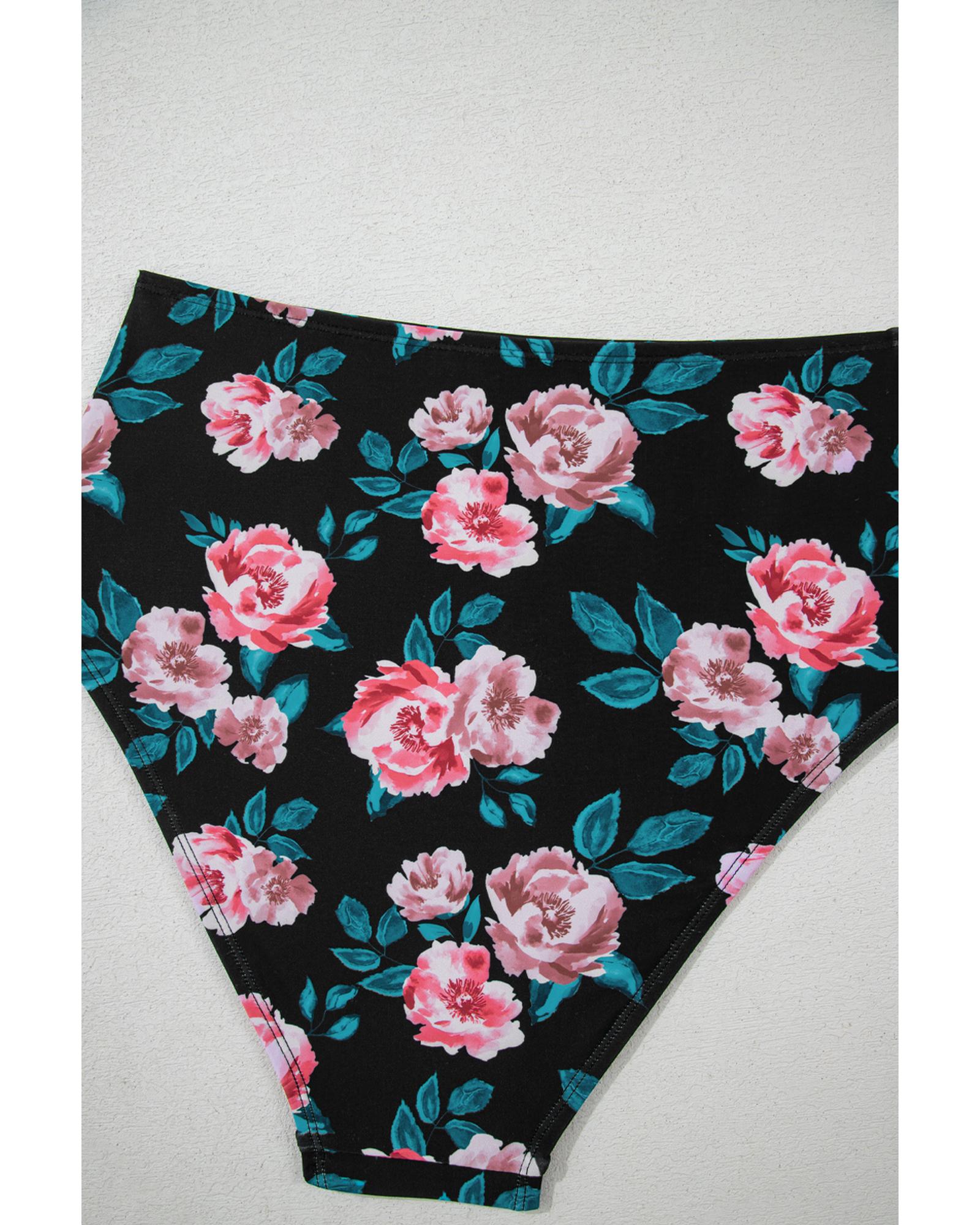 Rose Blouson Striped Printed Strappy T-Back Push up Tankini Top - 2XL