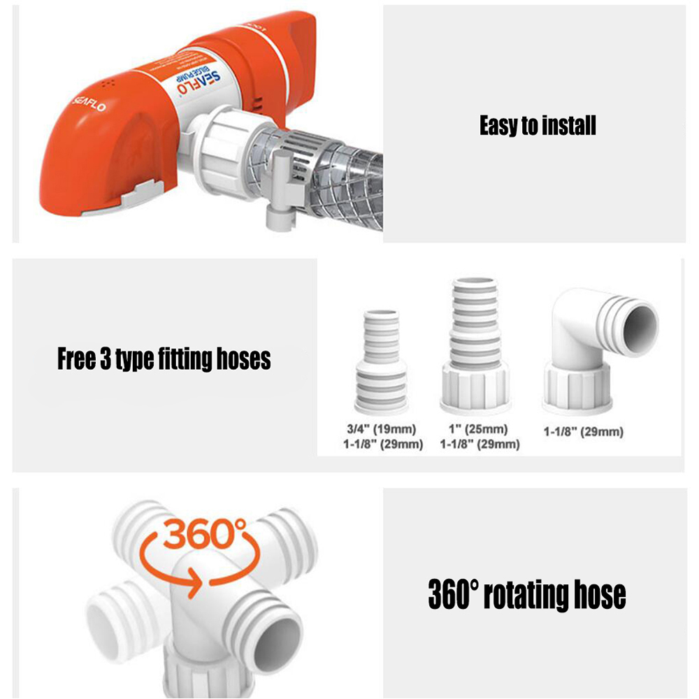 Our best drain down levels ever as low as 10mm or 1/3”. SEAFLO Narrow, Low profile bilge pump fits deep down in small/awkward bilge spaces where other pumps won’t fit. Compact, Horizontal or vertical mounting, with 360 Degree Discharge for easy remove and replace and leaves the bilge almost dry. Automatic turns on and off when water rise down.