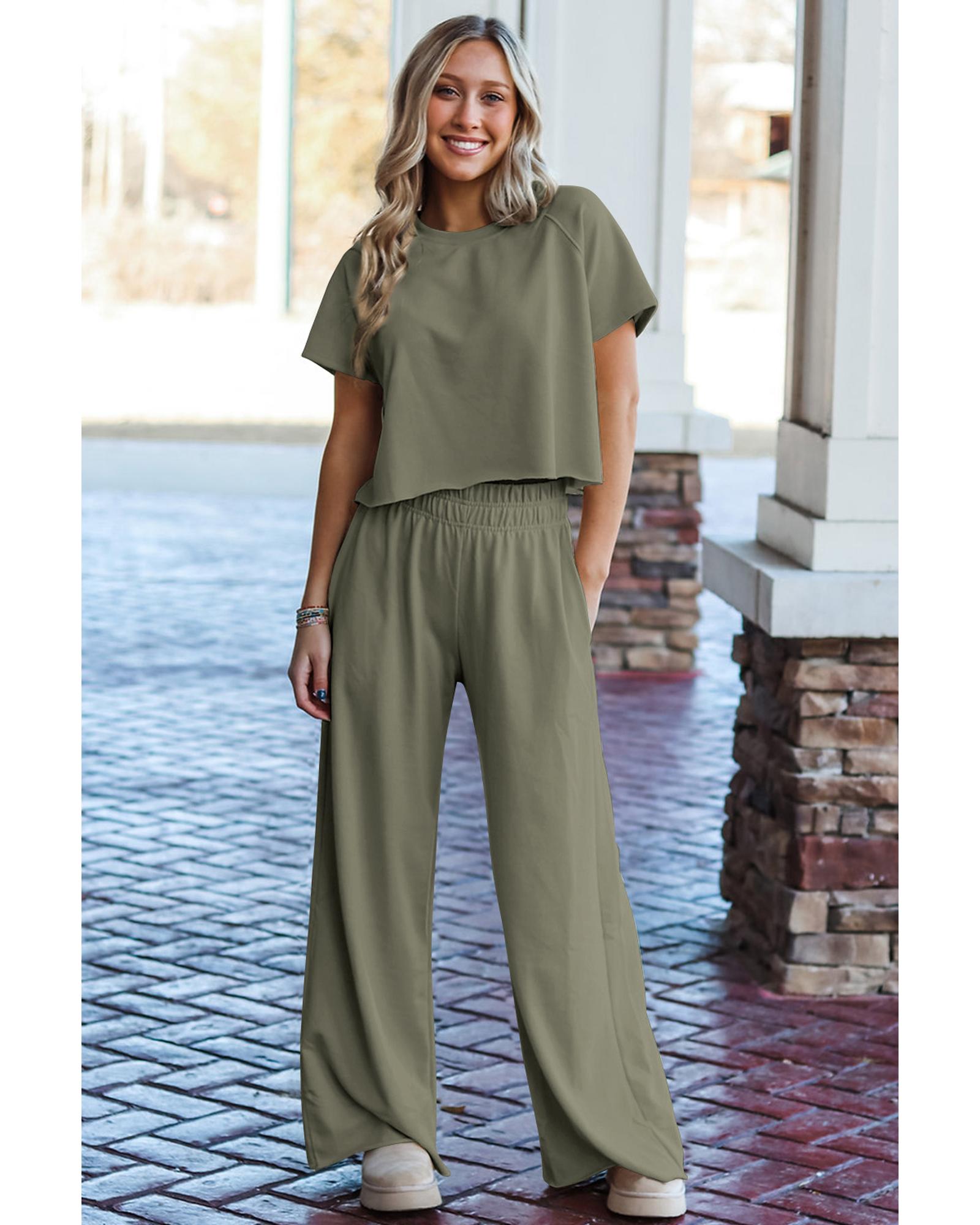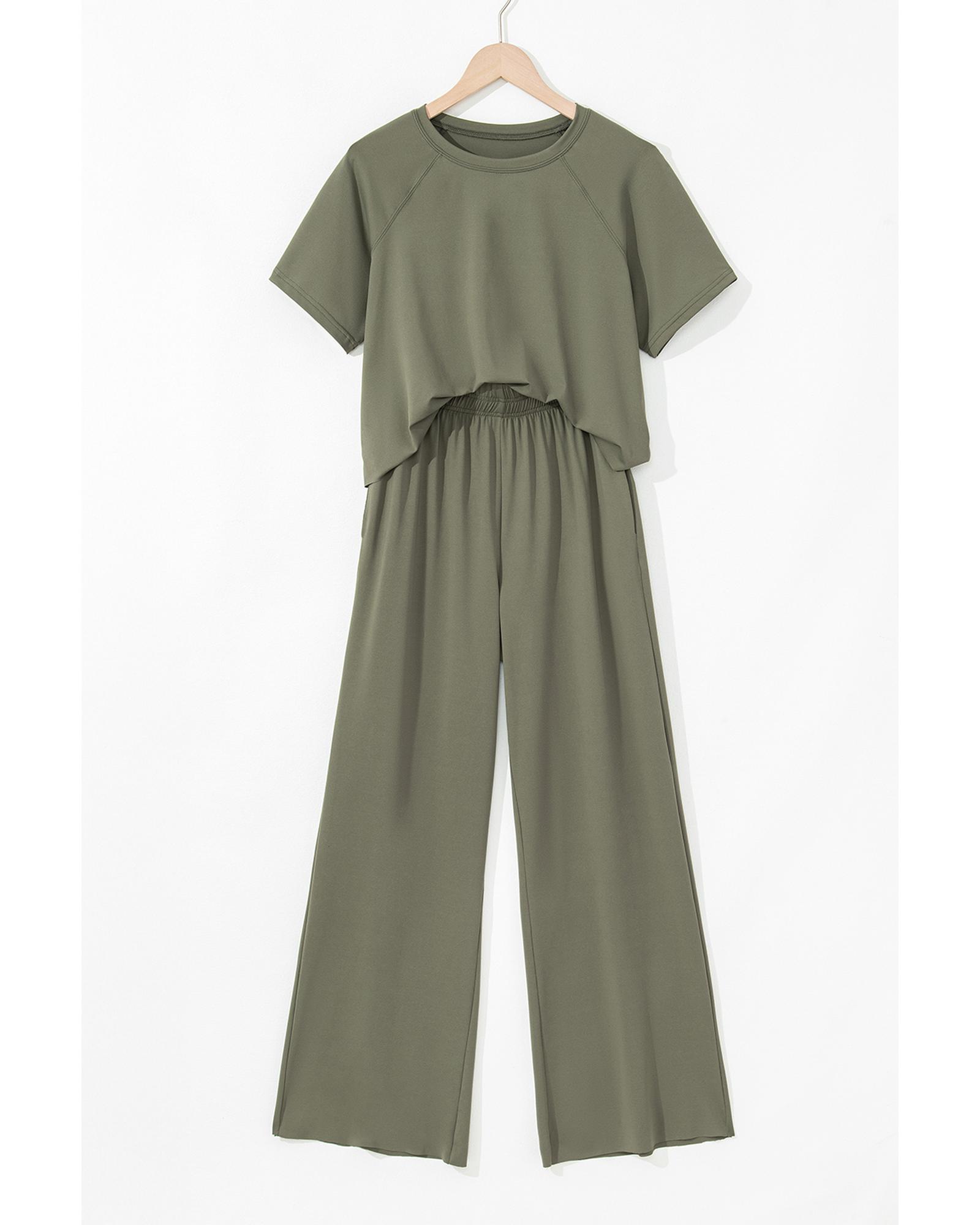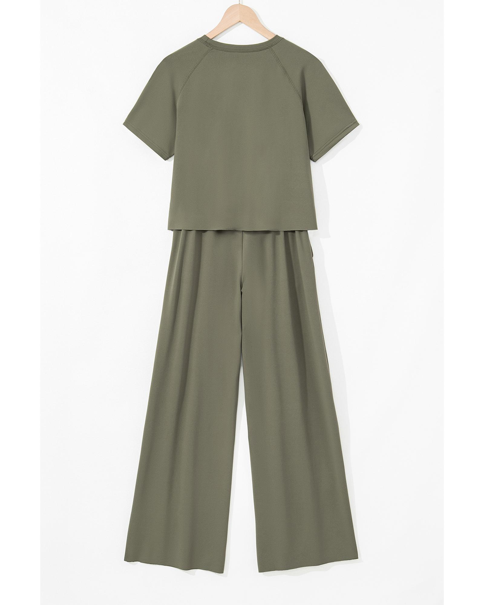 Seagrass Raw Hem Loose Tee and Wide Leg Pants Set – S
