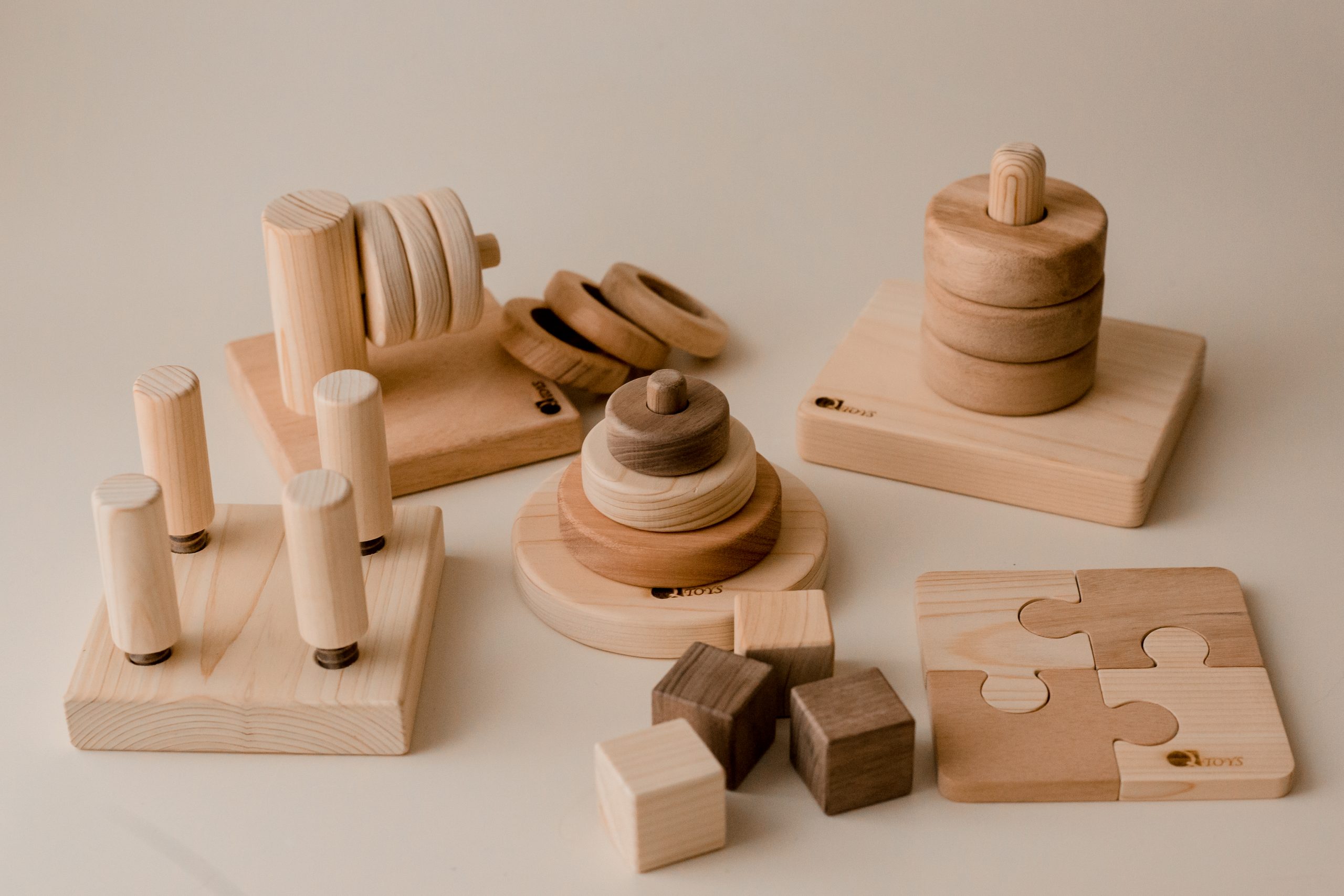 The perfect gift set for a Second Birthday. This set is made up of our Montesorri inspired toys. Includes: Toddler Contrast puzzle, Screw Game, Mini Stacking Toy, Montessori Vertical ring stacker , Horizontal Hanger and set of 4 wooden blocks.