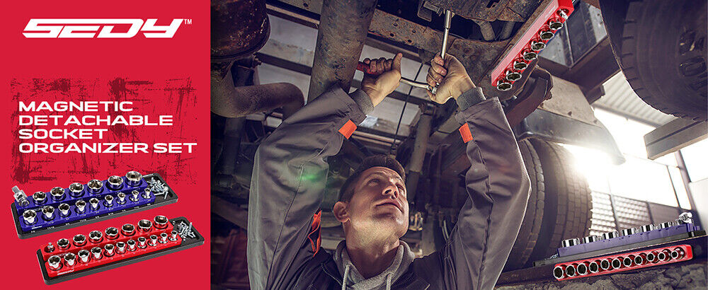 SEDY 2Pc Magnetic Socket Organizer 1/2 Drive Metric SAE Sockets Storage Holder