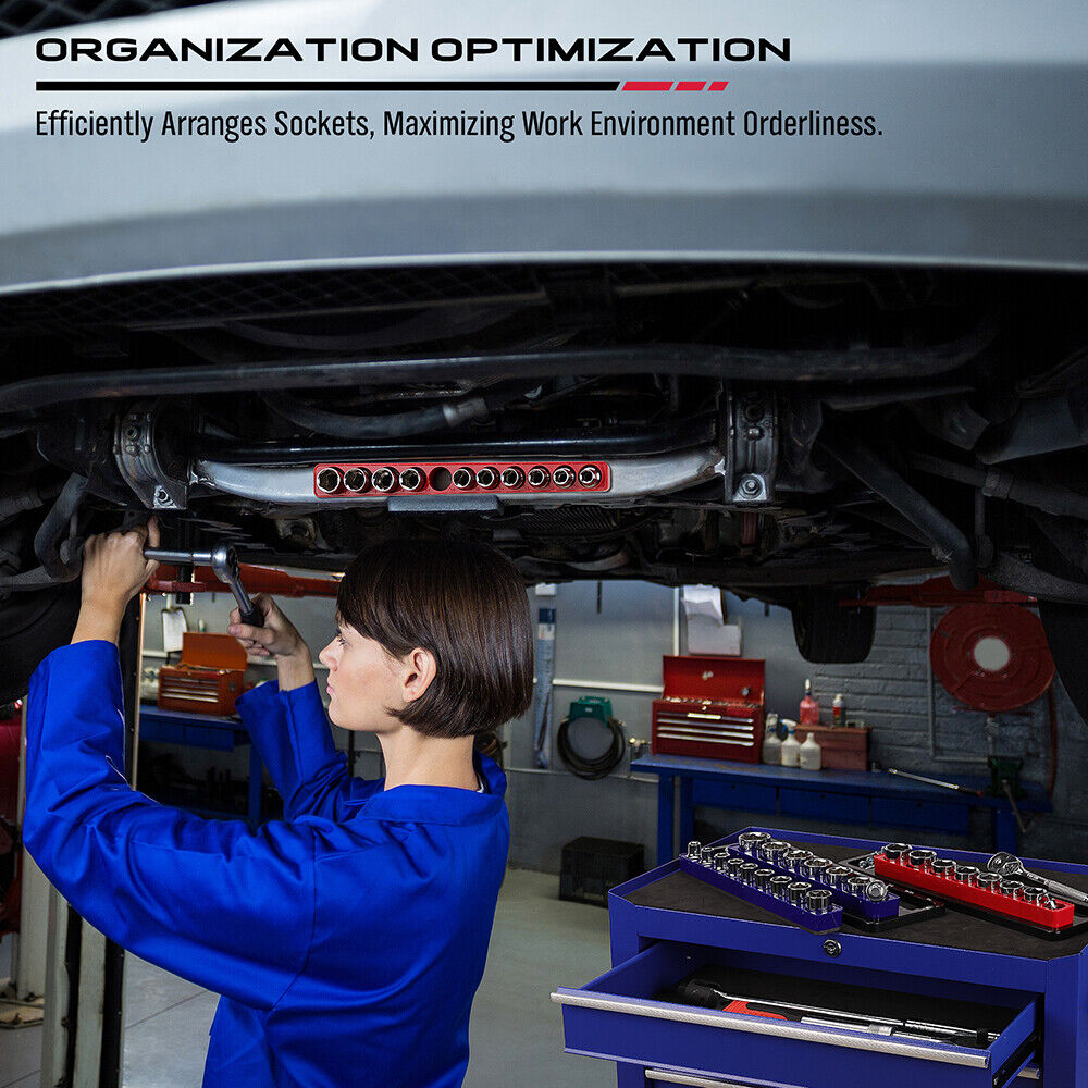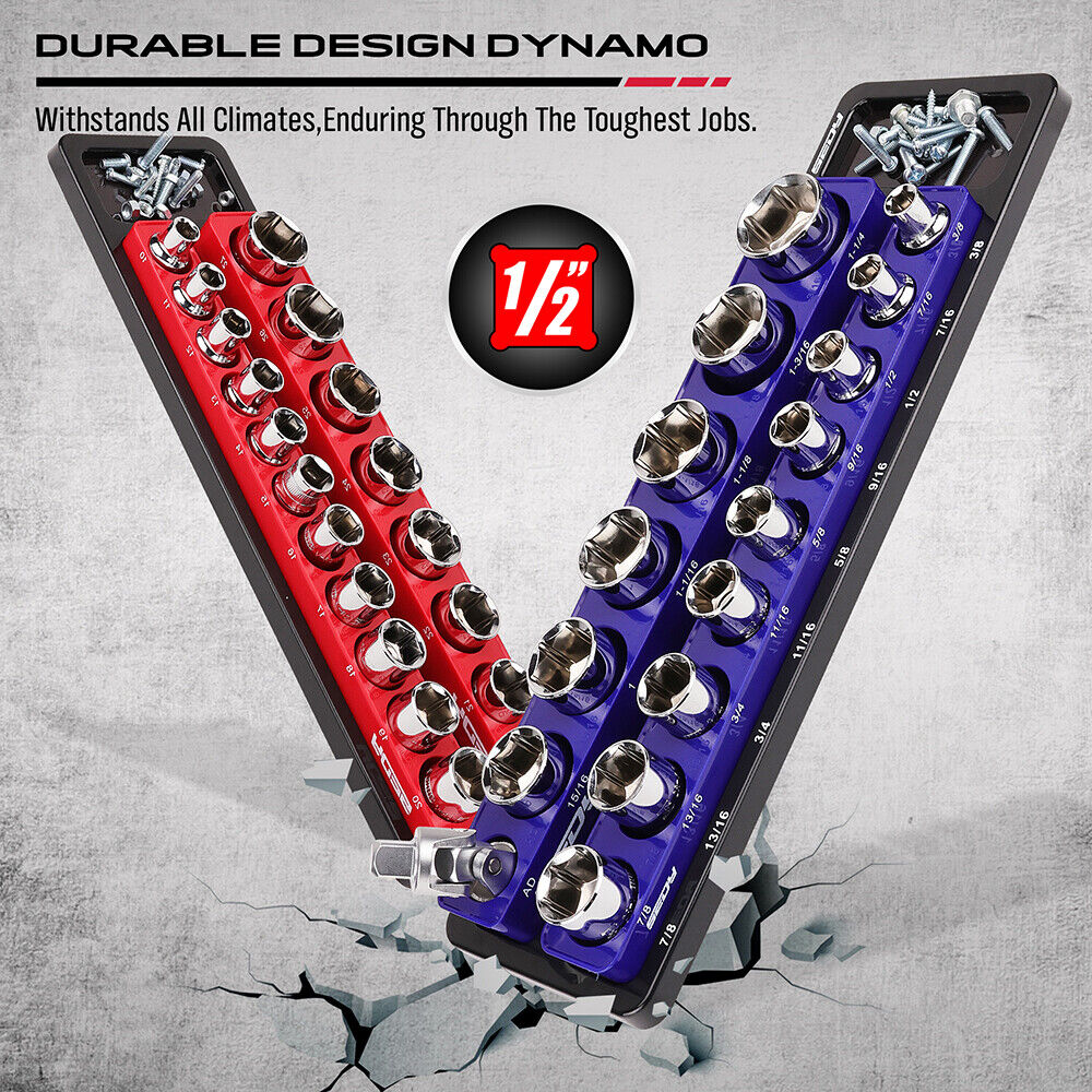 MAGNETIC GRIP– Ensure your 1/2-inch sockets remain securely in place, whether in a drawer, toolbox, or mounted on a tool cart with our magnetic socket organizer set.