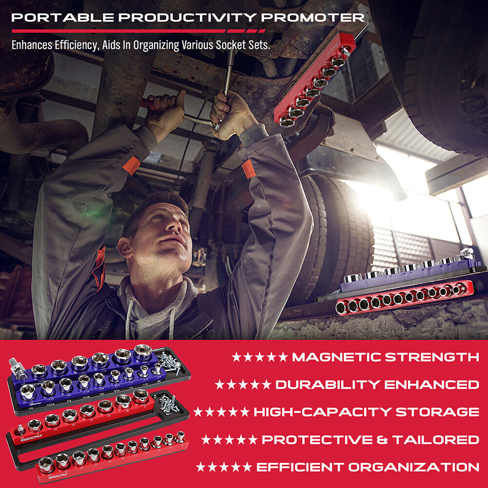 DEDICATED FIT– Tailor-made for standard 1/2-inch SAE and metric sockets, our organizer ensures a tidy and orderly work environment, enhancing your productivity.