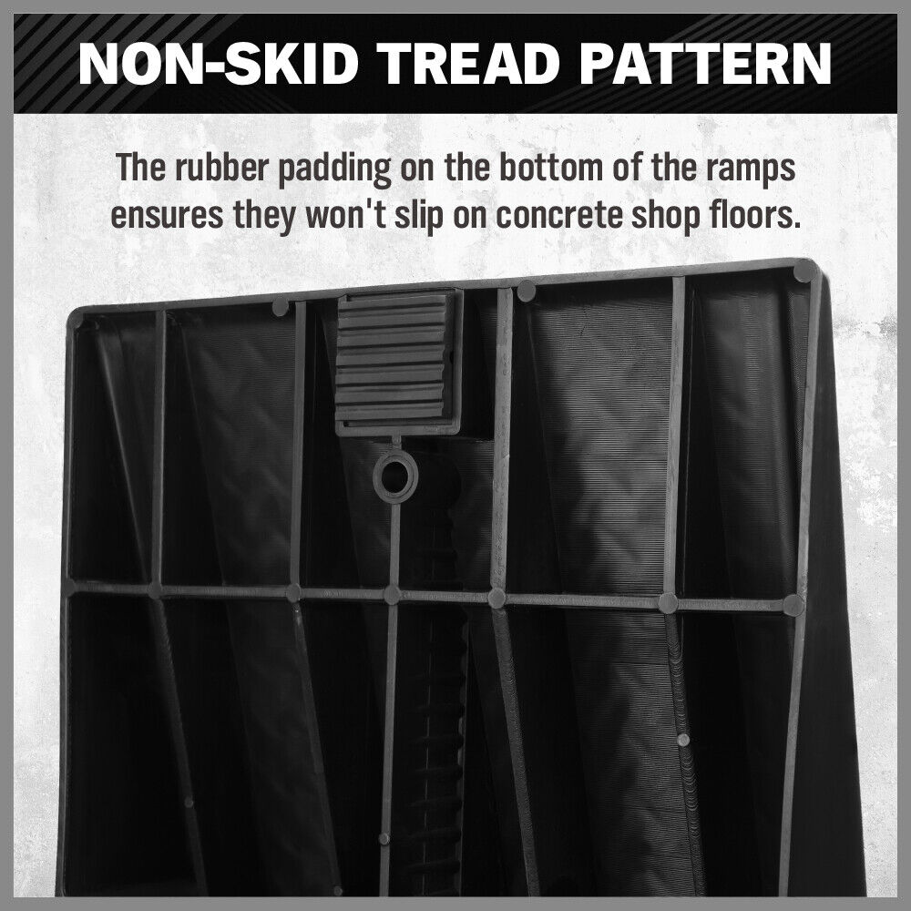 The innovative non-skid base helps reduce slippage while moving your vehicle on and off the ramps.