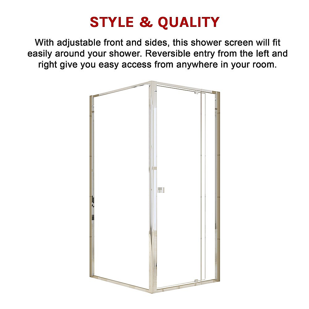 With adjustable front and sides, this shower screen will fit easily around your shower. Reversible entry from the left and right give you easy access from anywhere in your room. Make this elegant shower screen the centrepiece of your bathroom today.