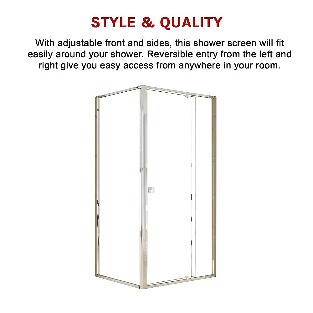With adjustable front and sides, this shower screen will fit easily around your shower. Reversible entry from the left and right give you easy access from anywhere in your room. Make this elegant shower screen the centrepiece of your bathroom today.