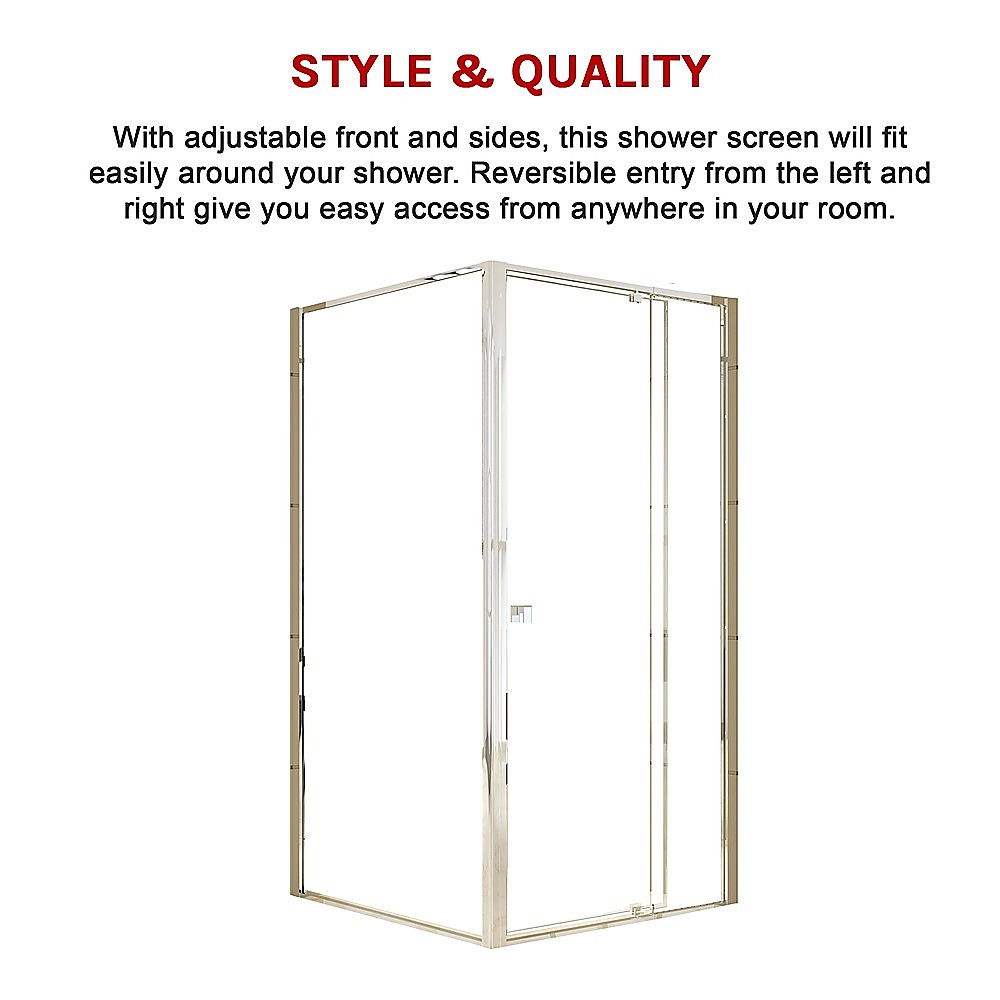 With adjustable front and sides, this shower screen will fit easily around your shower. Reversible entry from the left and right give you easy access from anywhere in your room. Make this elegant shower screen the centrepiece of your bathroom today.