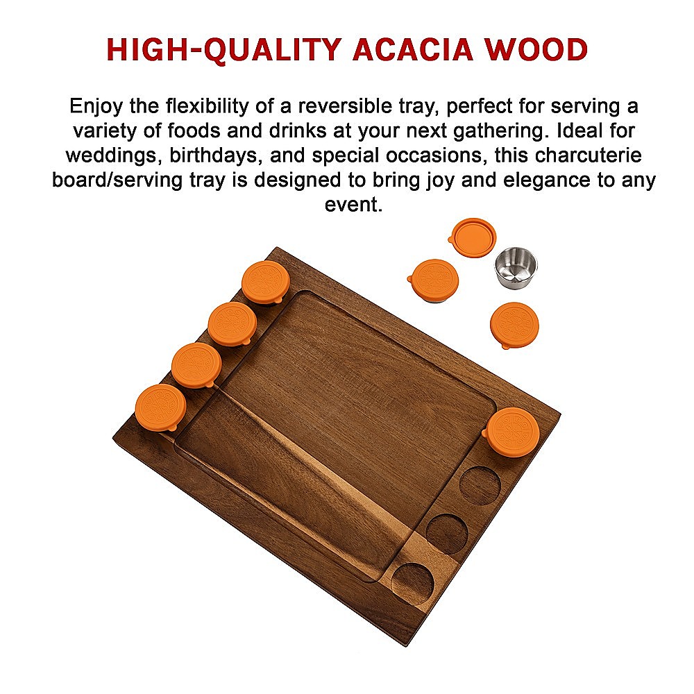 Serving Tray Double Sided Charcuterie Board 8 Sauce Cups Gift