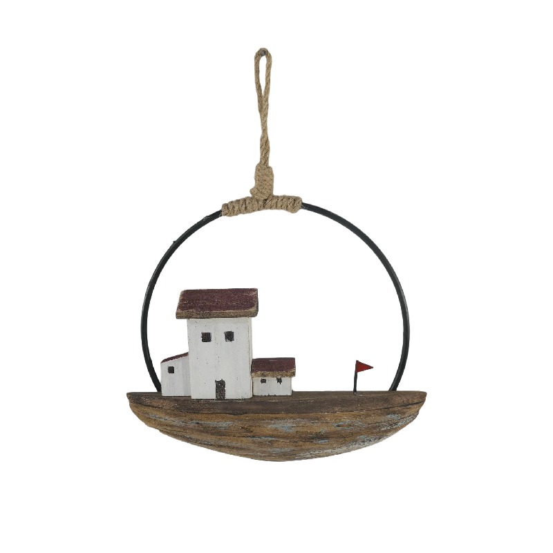 Set 2 Handcrafted Round Boat / Beach Wall Art 28cm