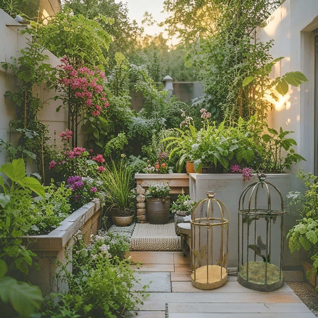 Set 2 Nested Distressed Finish Plant Cages w Butterflies 79cm, 69cm