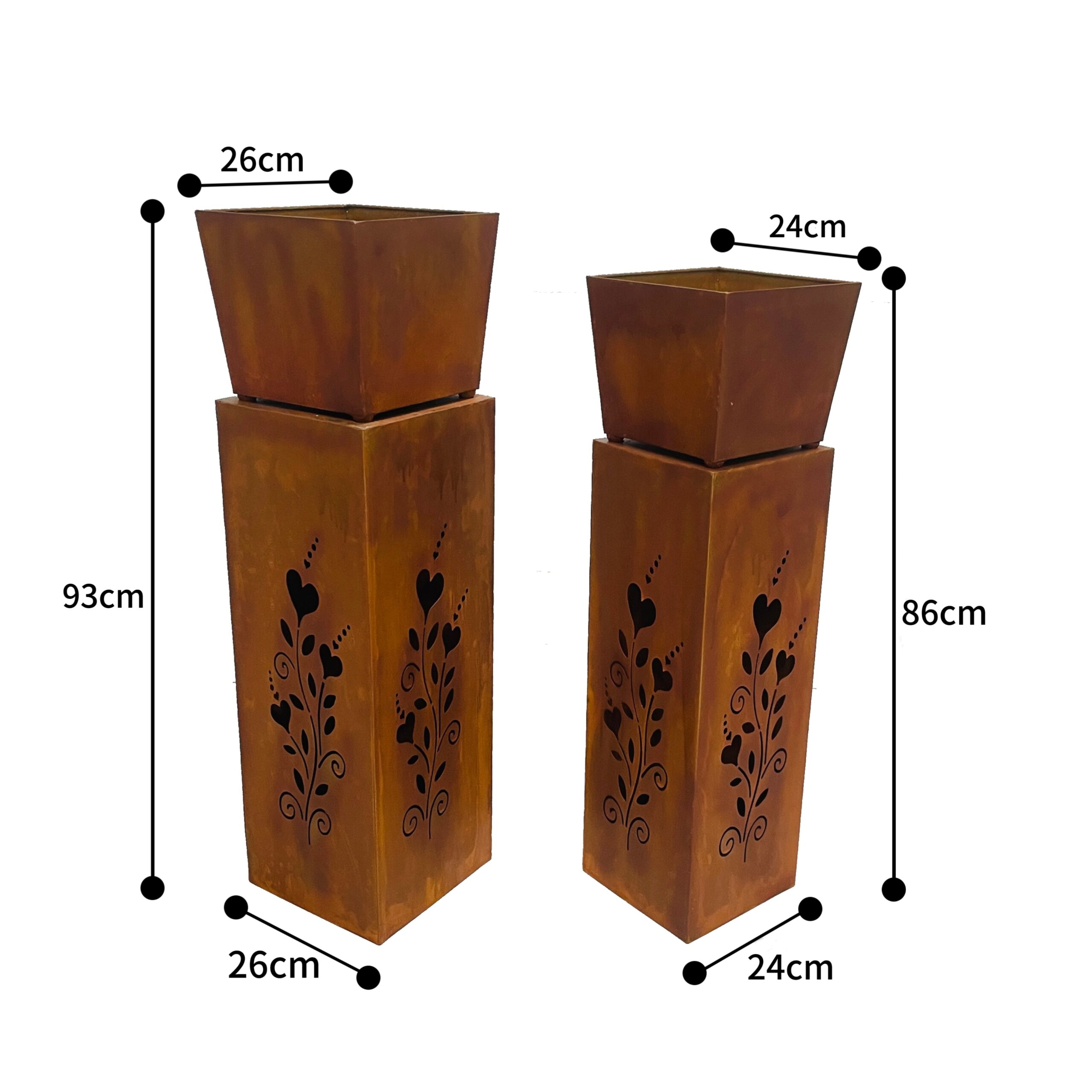 Set 2 Nested Square Pillar Rust ‘Hearts’ Panters 93cm, 86cm