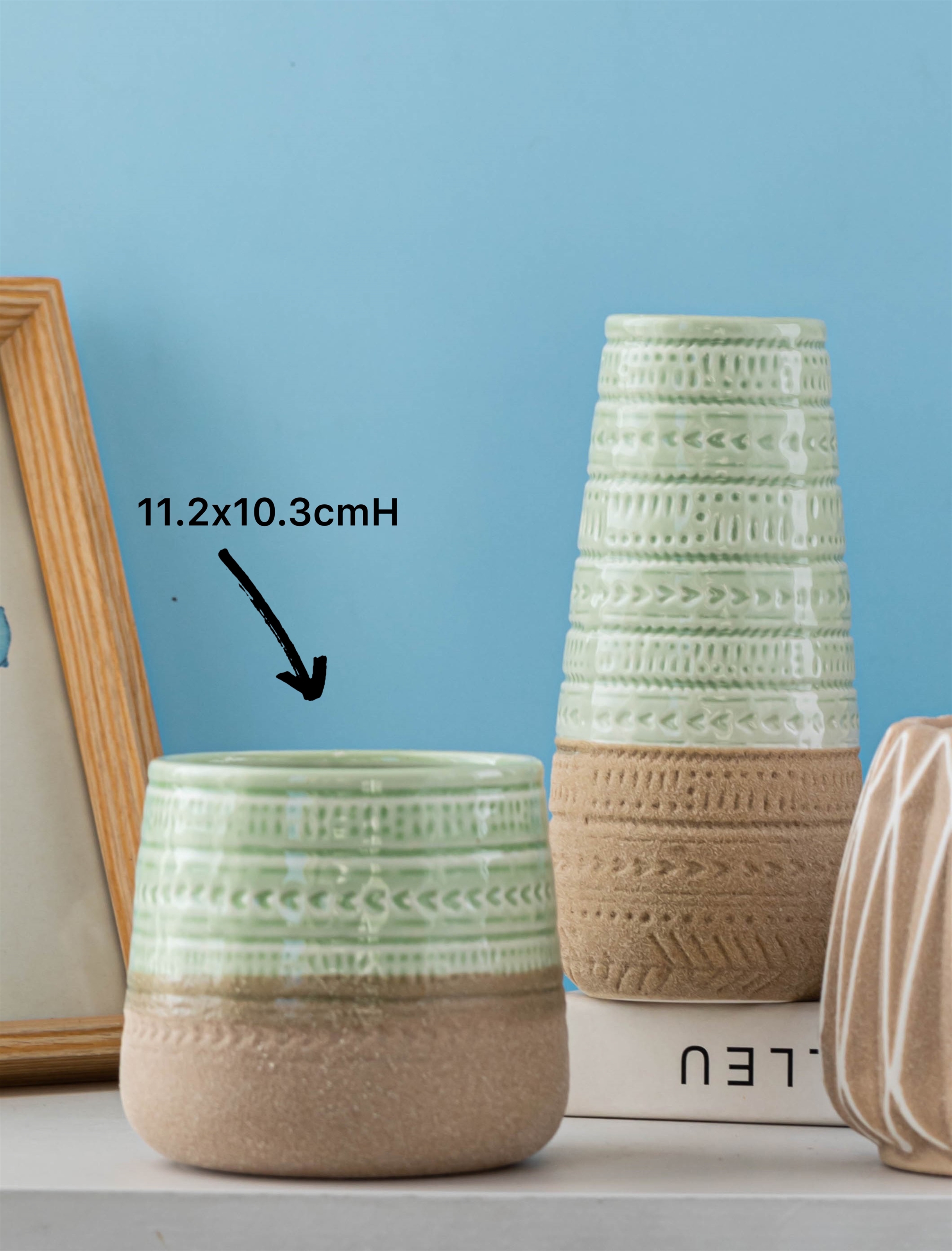 Set 2 Two Tone Mint Ceramic Planter 10cm
